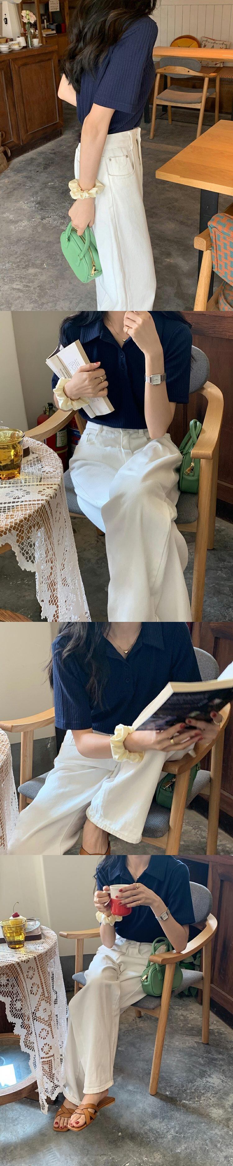 色:ホワイトポロカラーピットストリップT,ネイビーブルーのポロカラーピットストリップT