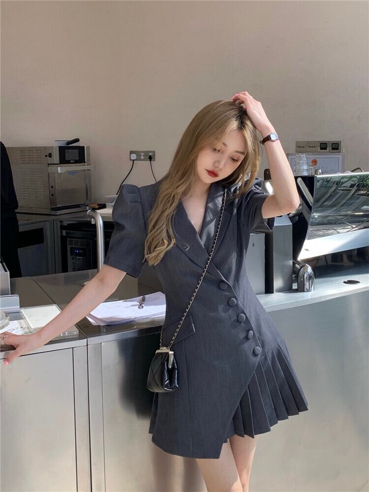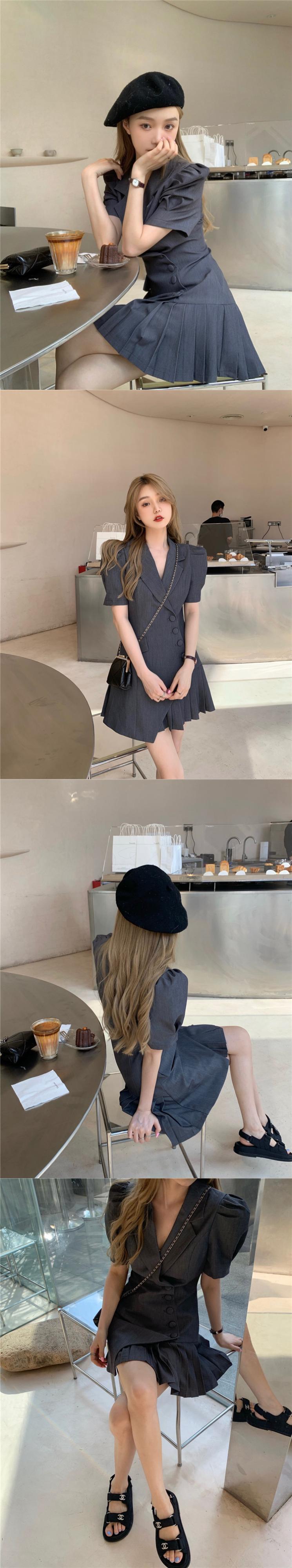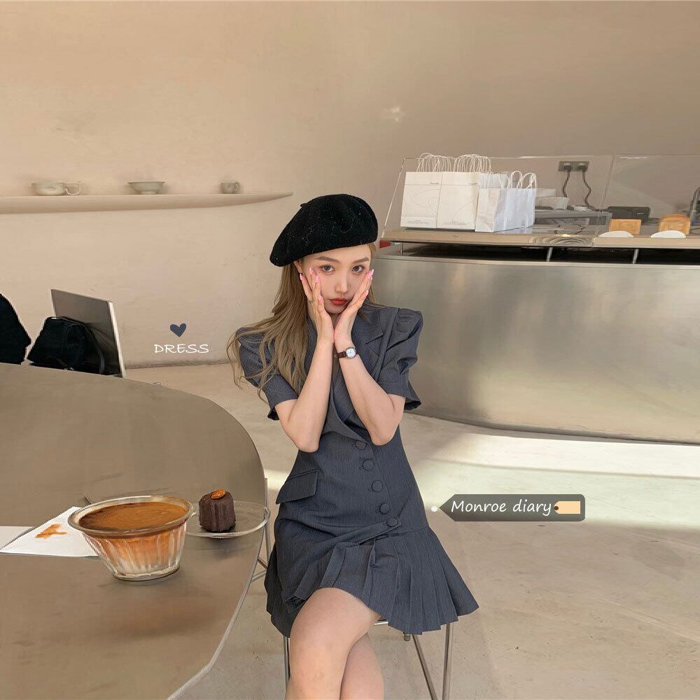 スタイルワンピース夏服ウェストAラインショートスカート ストリート 夏物 パフスリーブ ウエスト MONROE28247898235