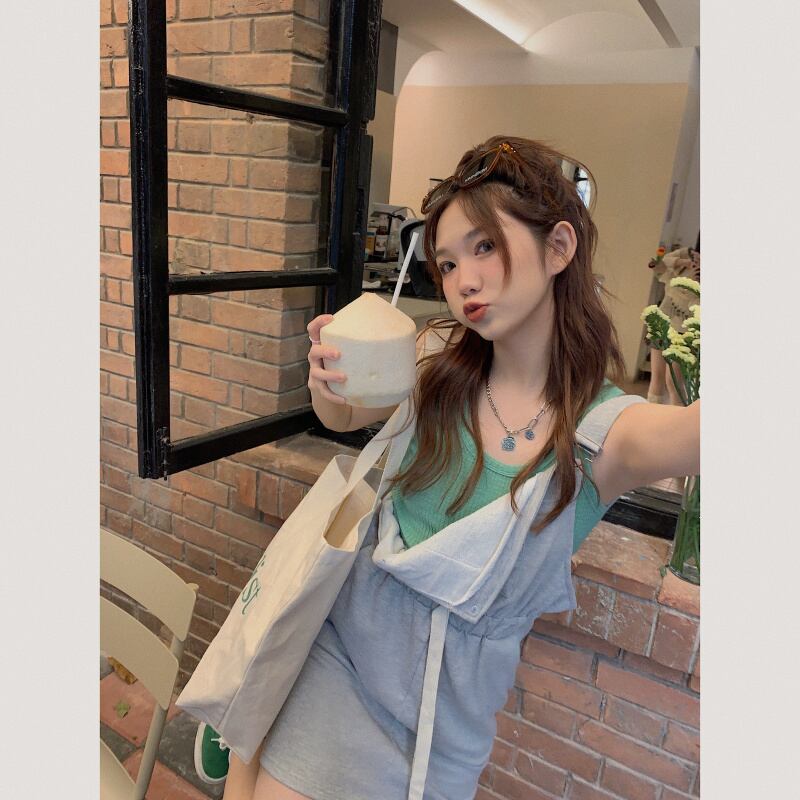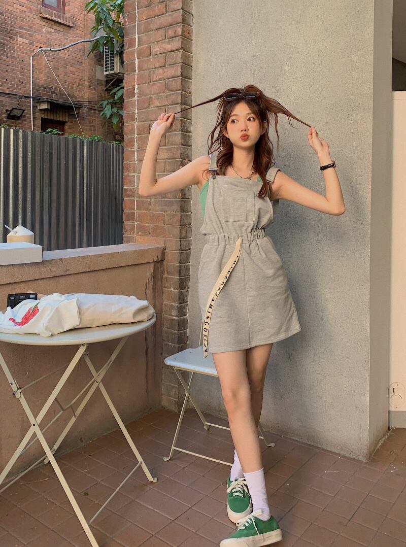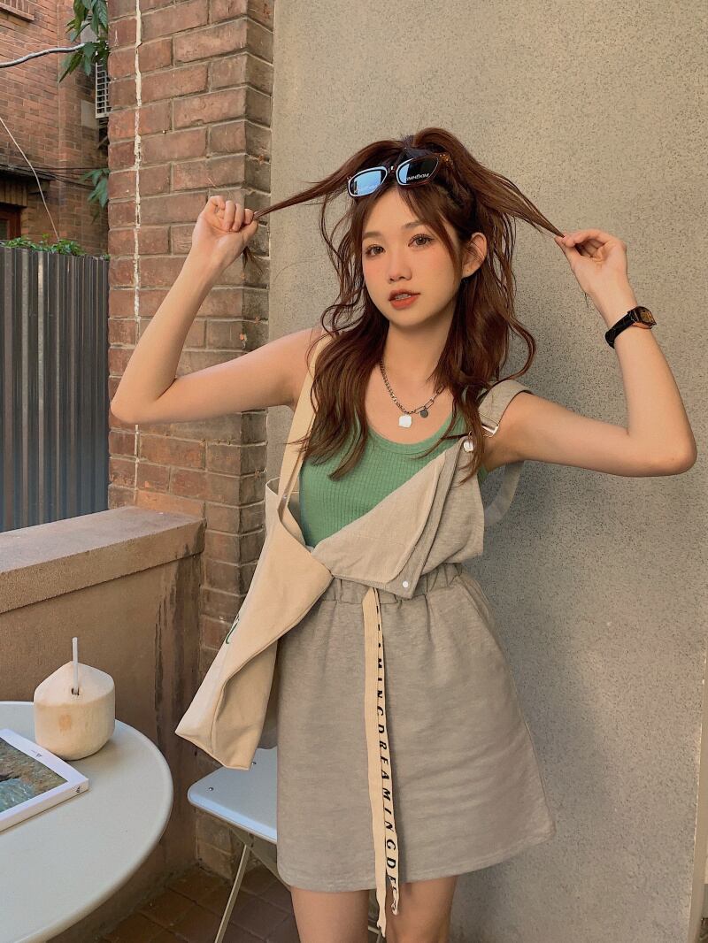 色:ミントグリーンベスト,チェリーTシャツ,ストラップドレス