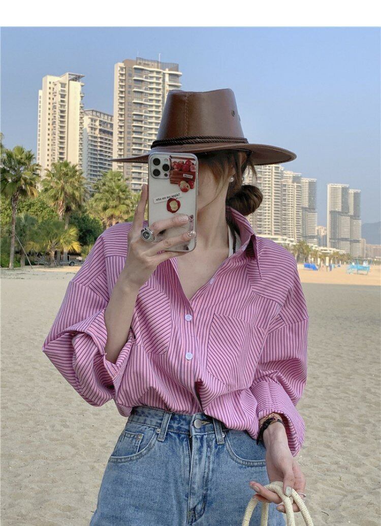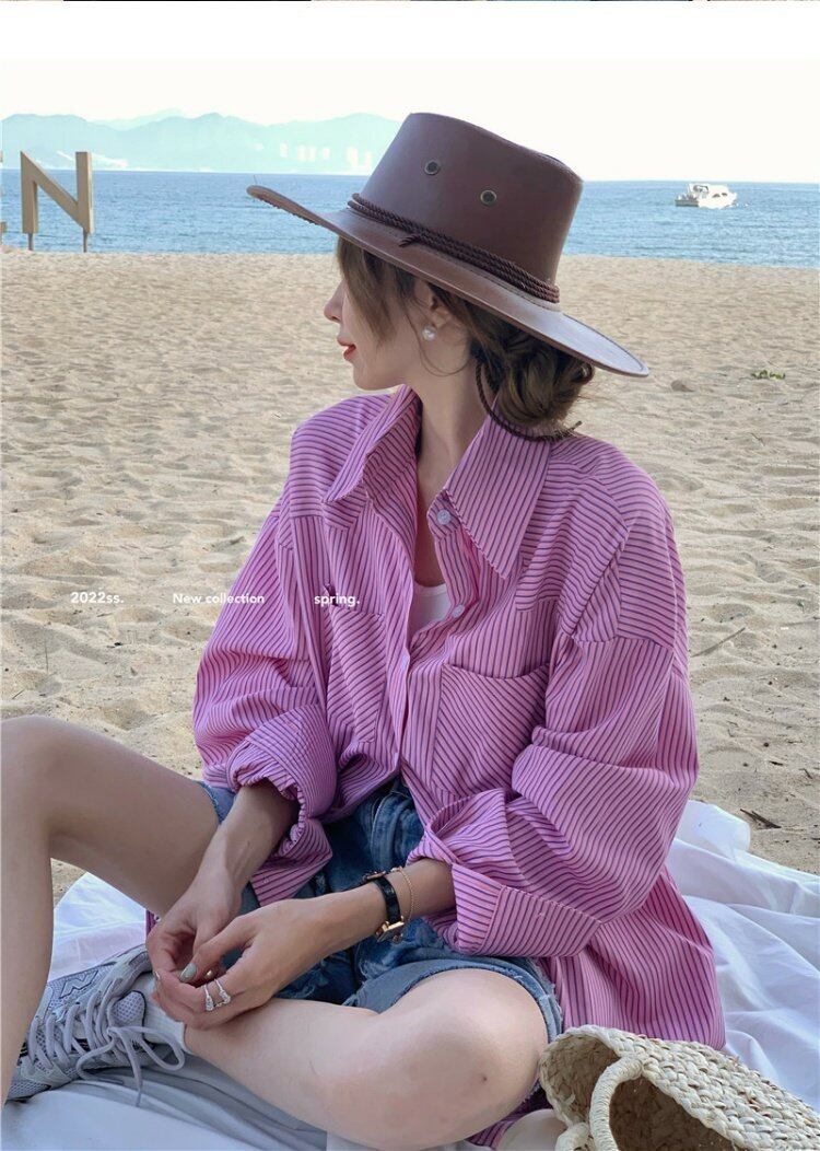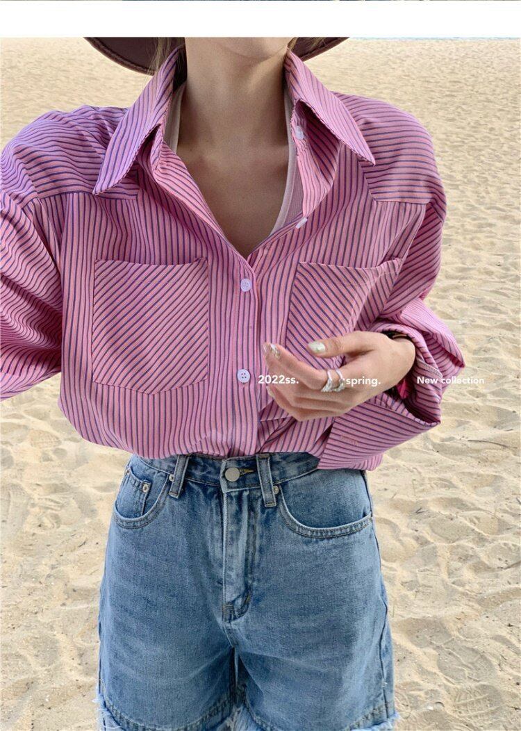 ストライプシャツ ジャケット スプリングルーズトップス 春物 MONROE7004580542