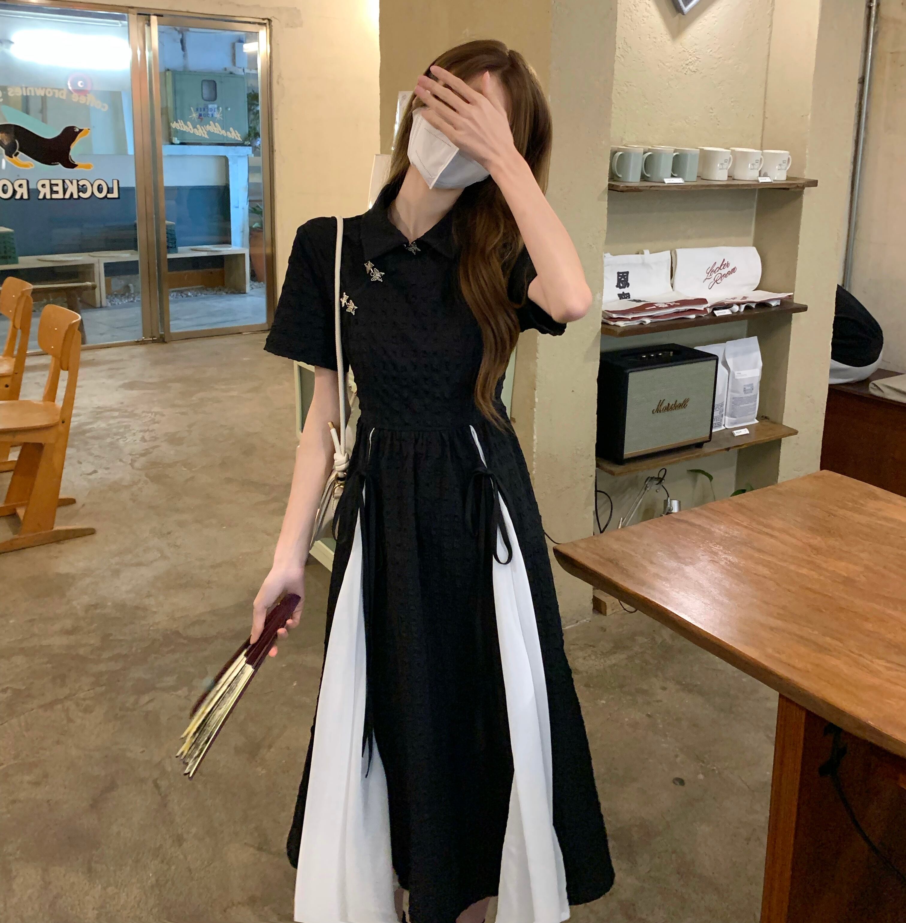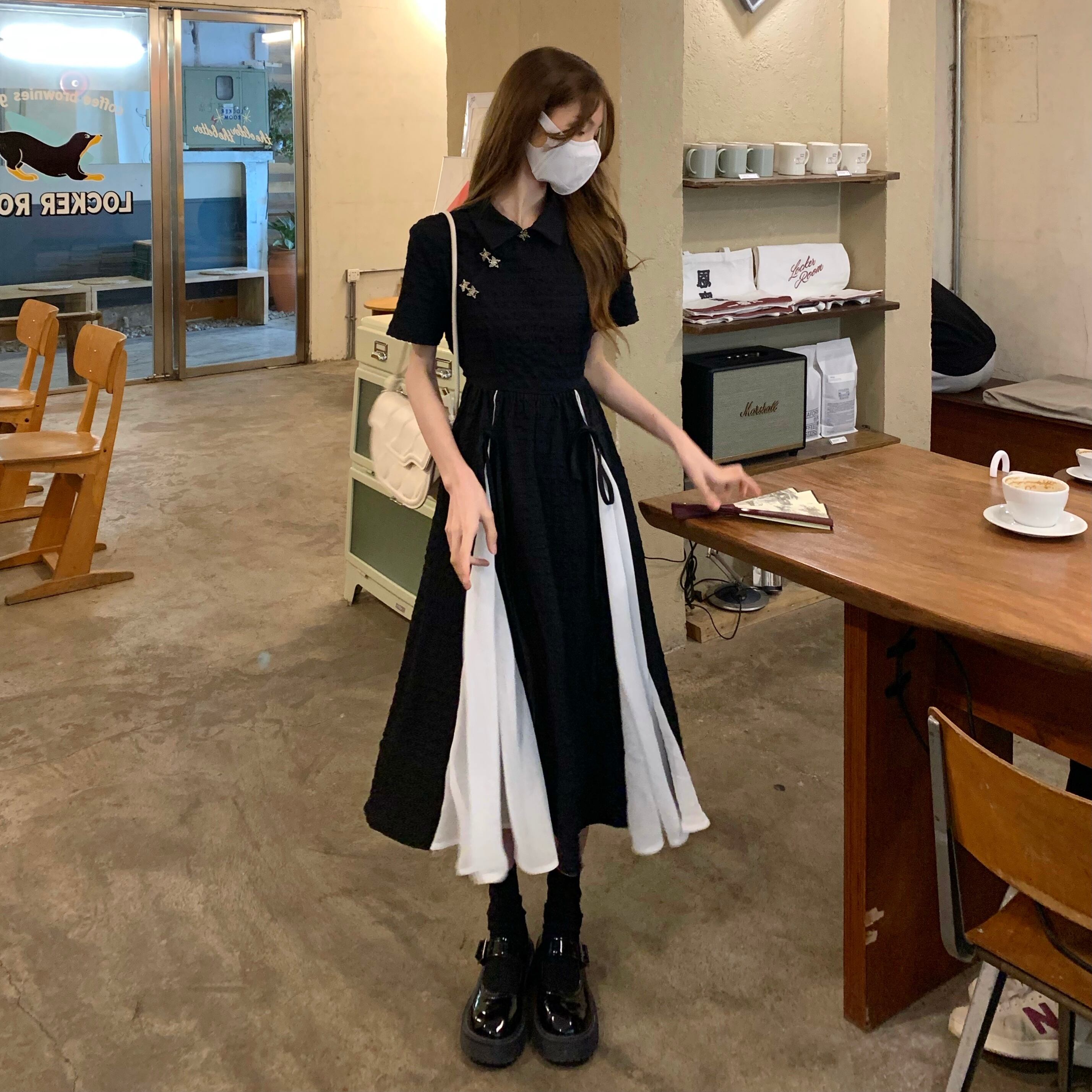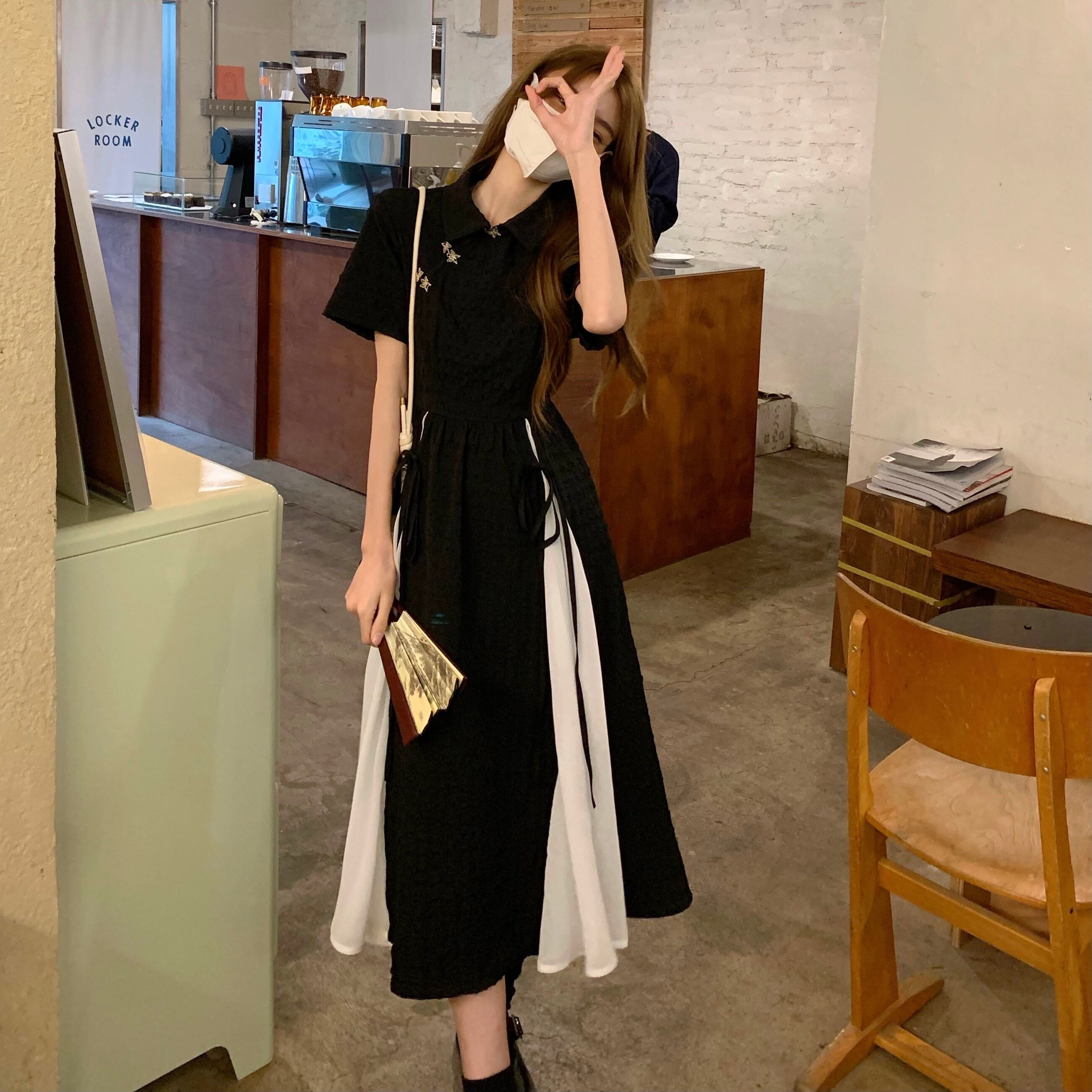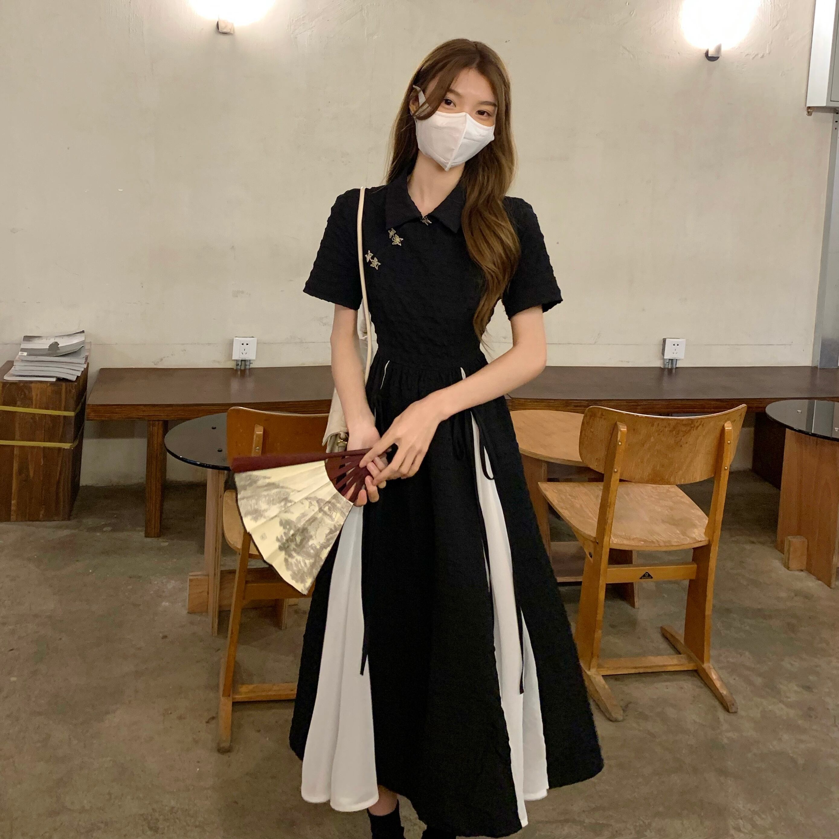 スタイルワンピース夏服ブラックスカート 夏物 ミドル丈 ワンナンバー17678131099