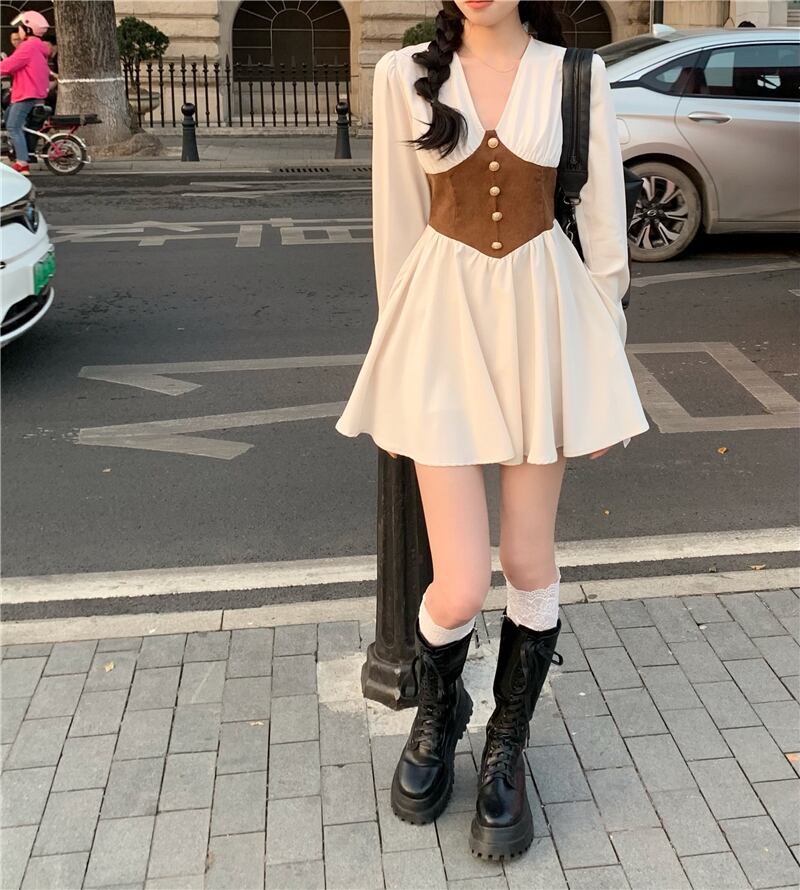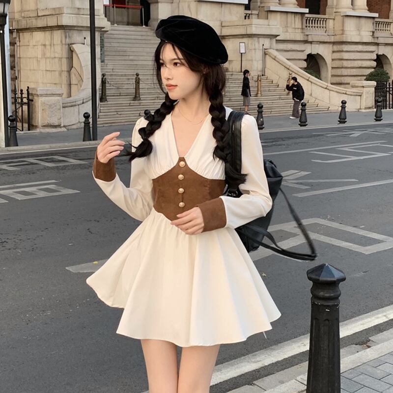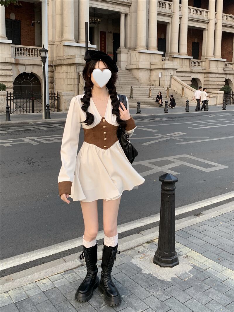 ワンピーススプリングウェストショートスカート 大人ガーリー スウィート キュート カジュアル 春物 ピュア ウエスト SYJ37885385046