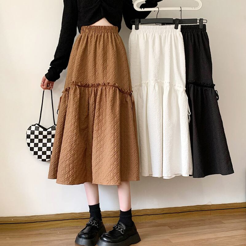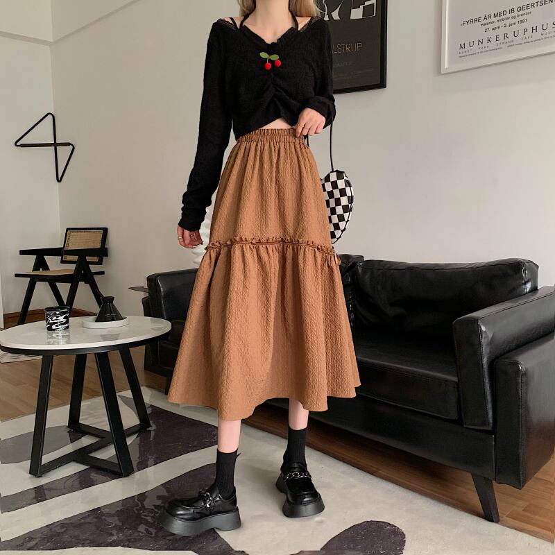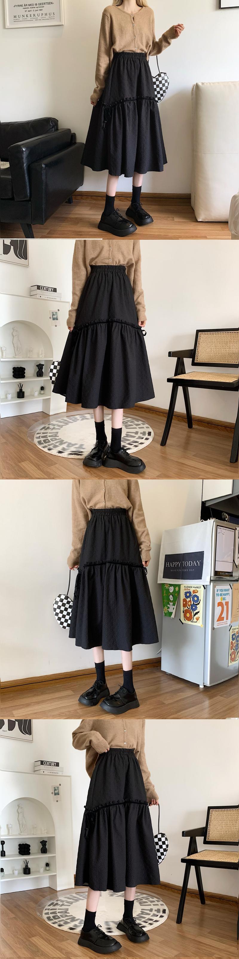 ブラックスカート スプリング秋物ハイウェストウェストAラインロング 春物 オータム ウエスト ミドル丈 SYJ1353052071