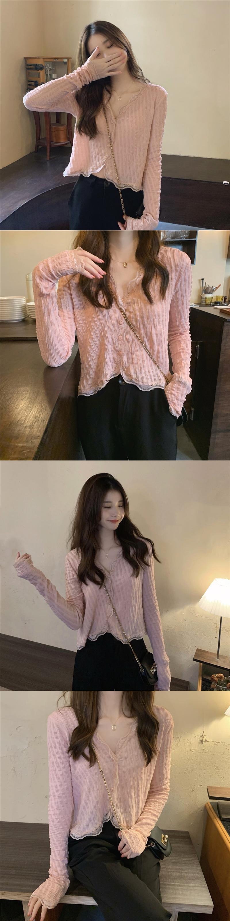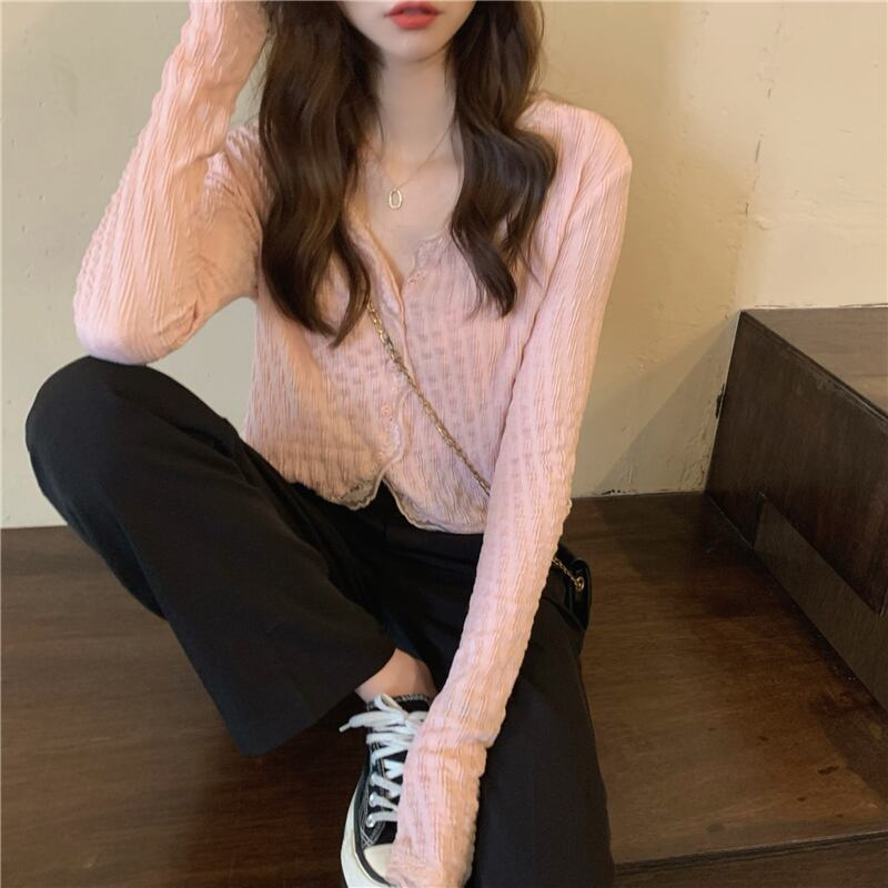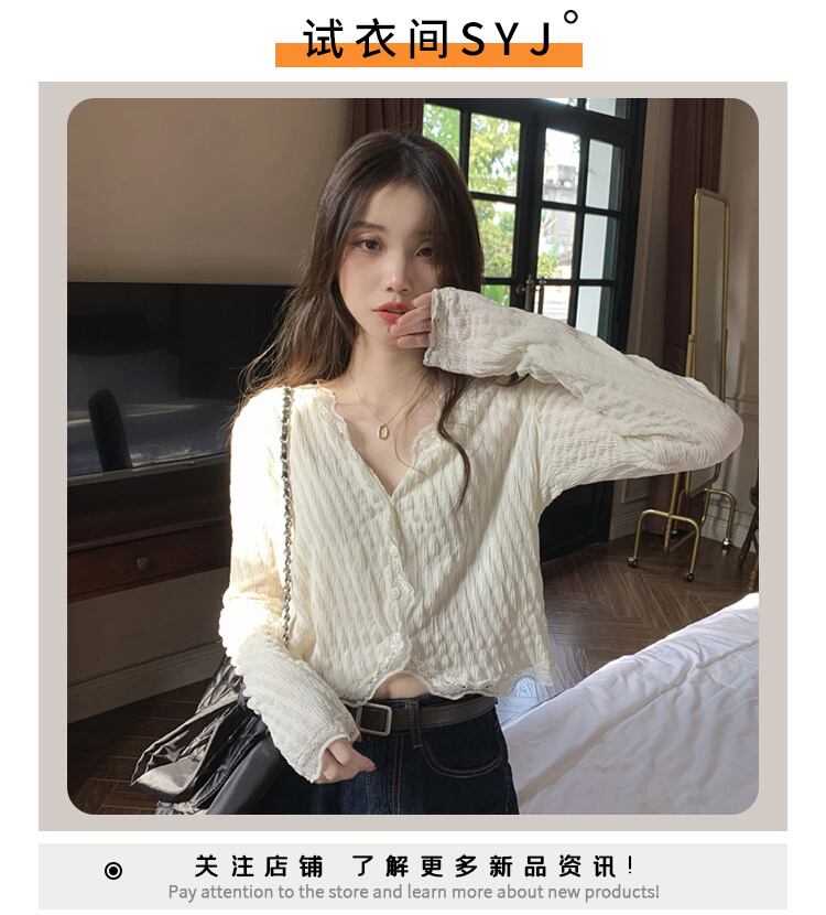 ショートトップス スプリング韓国ファッションスタイルVネックシャツ NEW 春物 SYJ95263561347