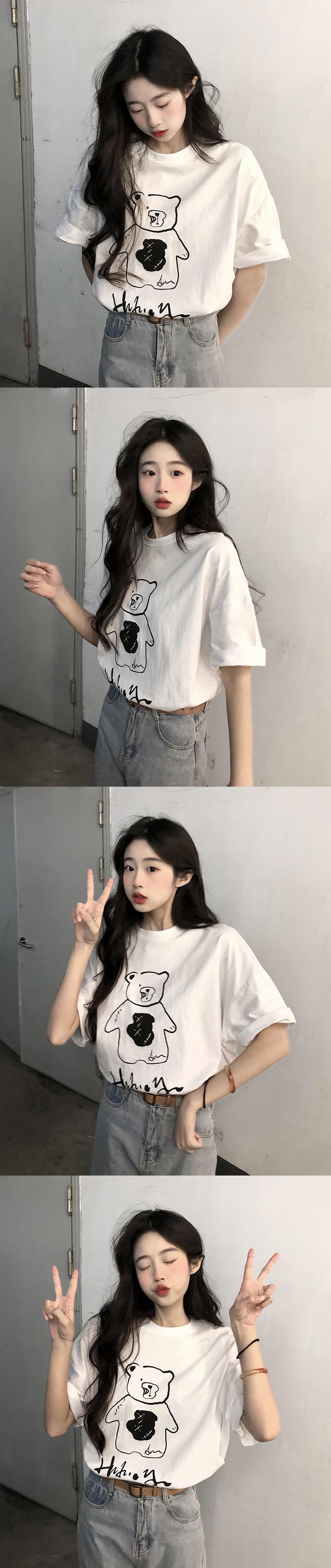 色:ブラックブロークンベアTシャツ,ホワイトブロークンベアTシャツ