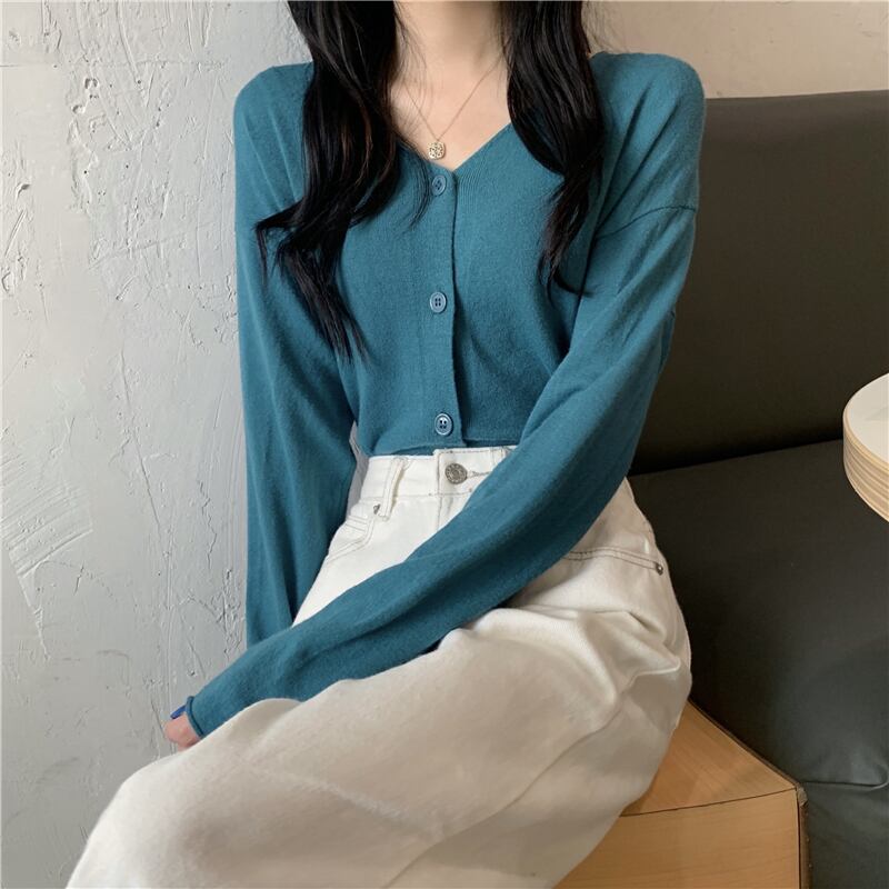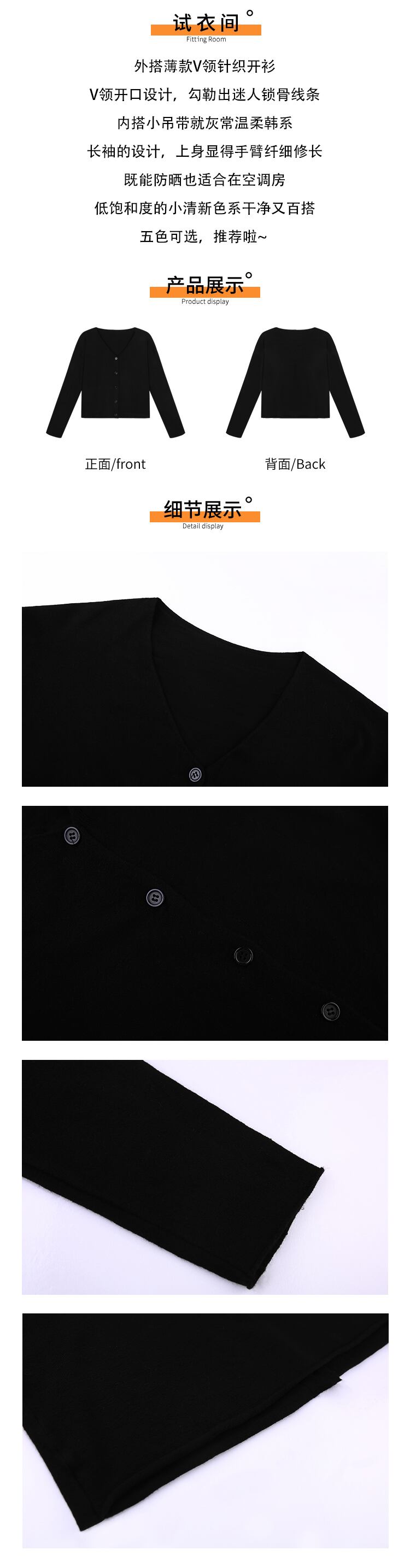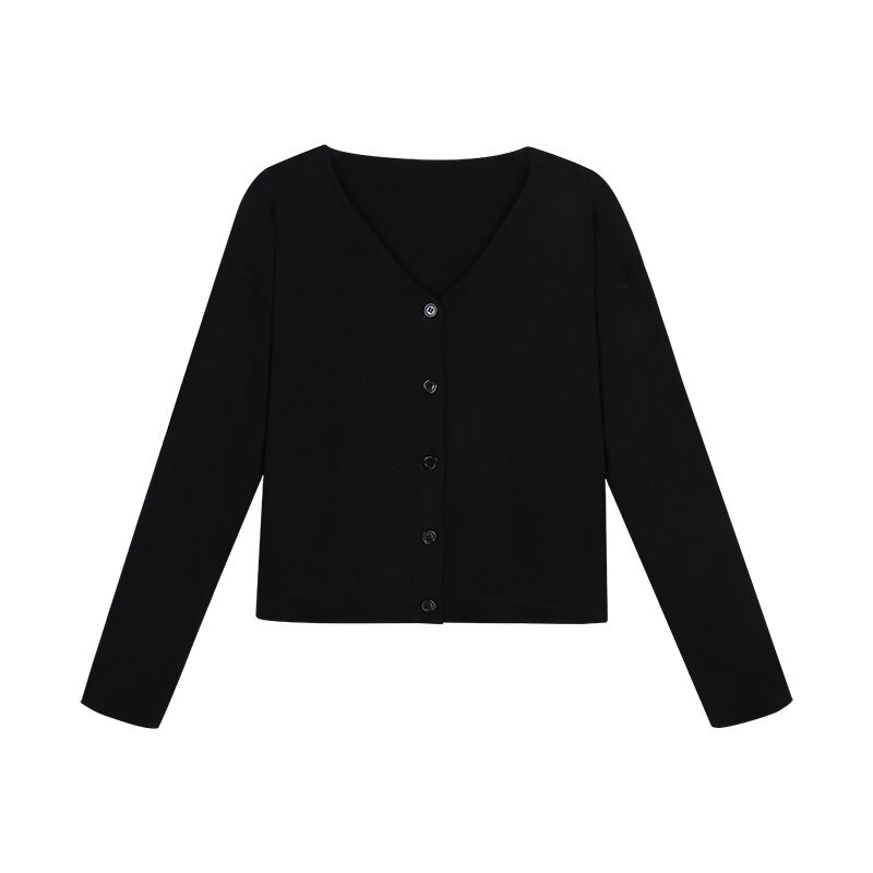 ブラックニットカーディガン薄手スプリング秋物アウタースタイルショートVネックセーター コート 春物 オータム SYJ75377713282