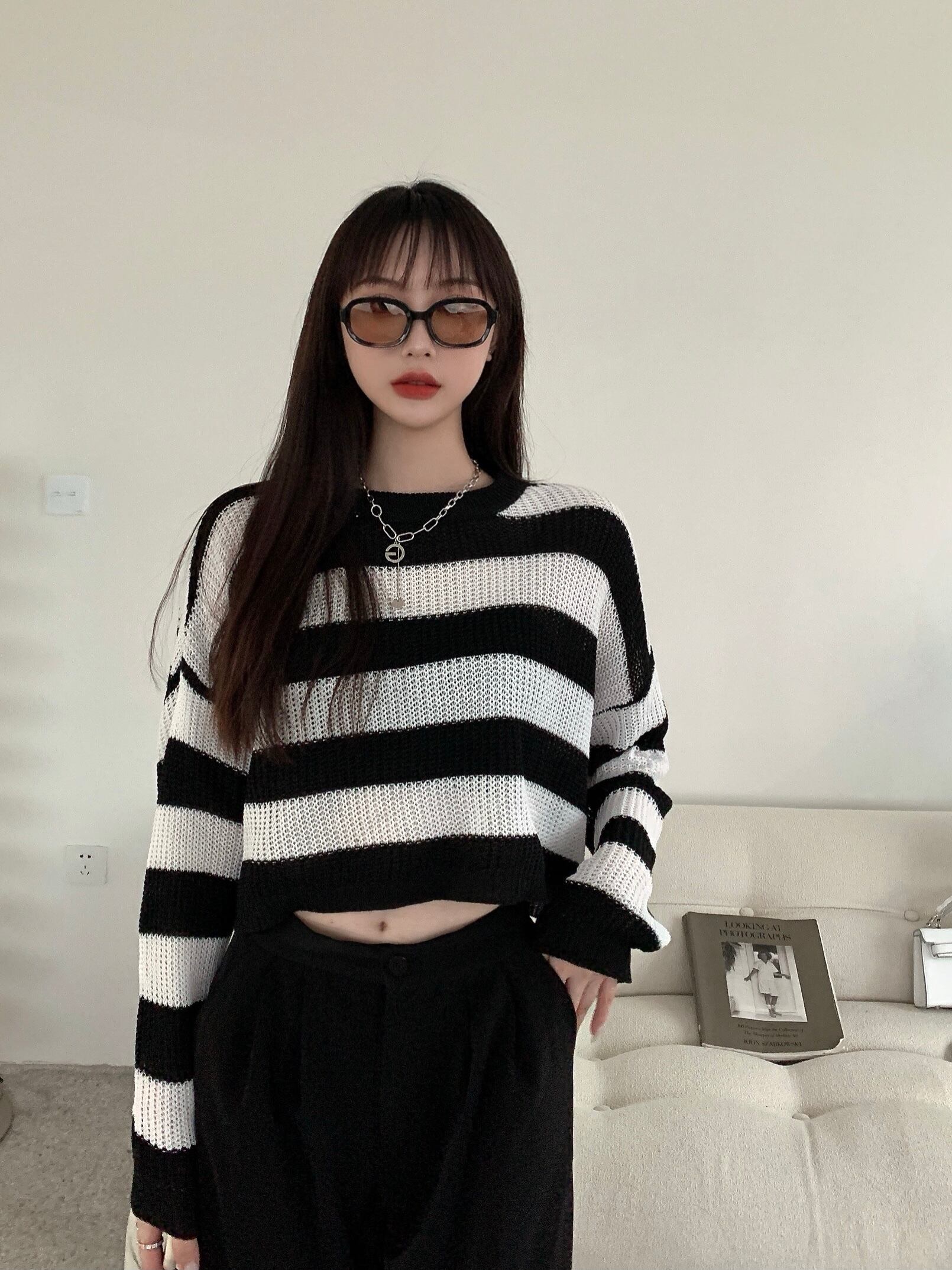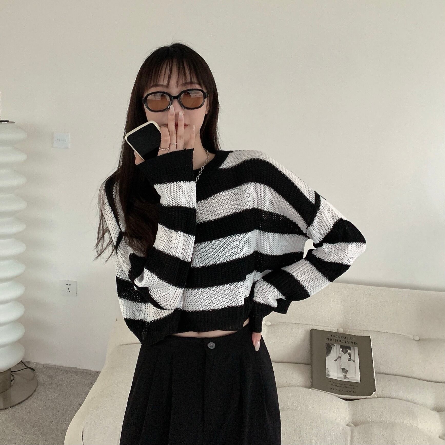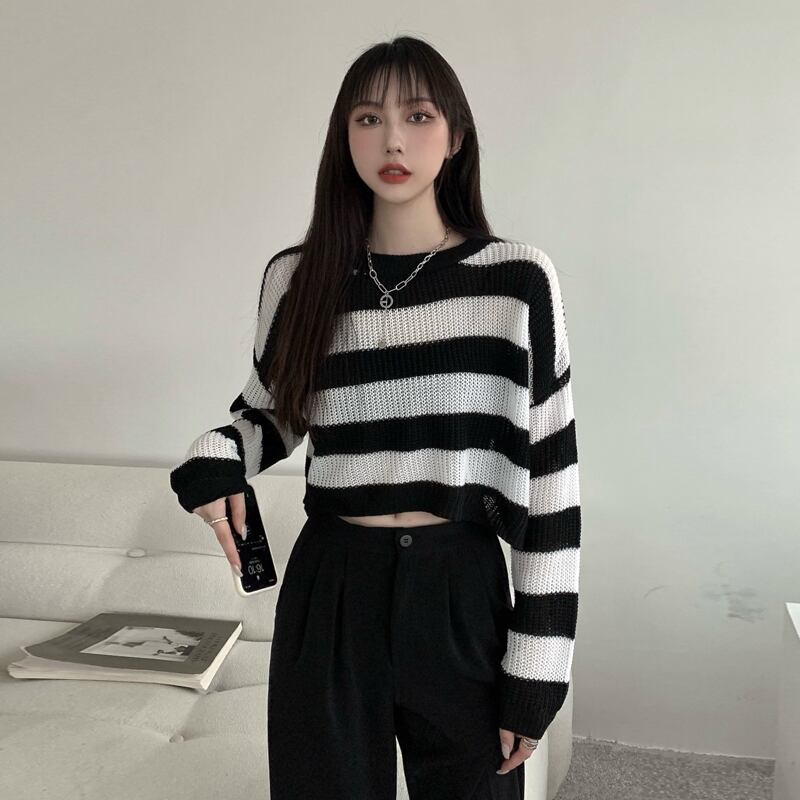 スタイルストライプセーター スプリング秋物薄手ショートトップス 春物 オータム ピュア SYJ82699406826