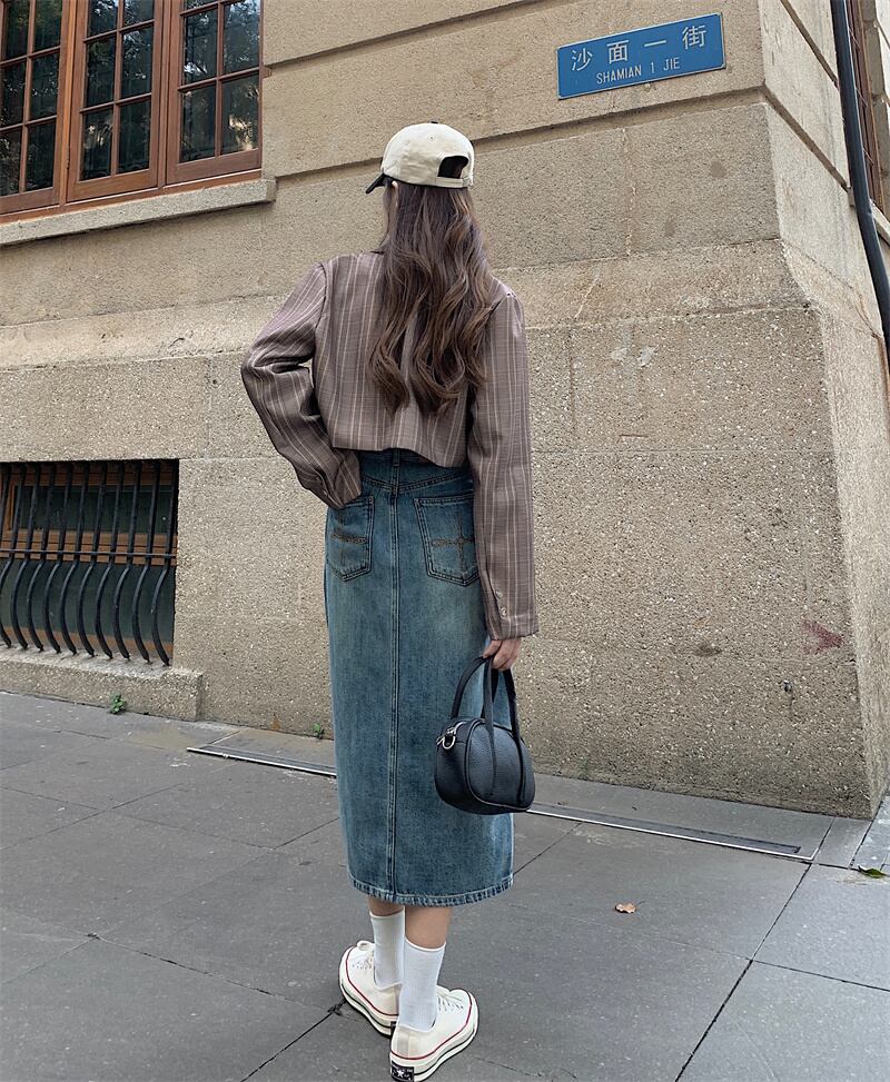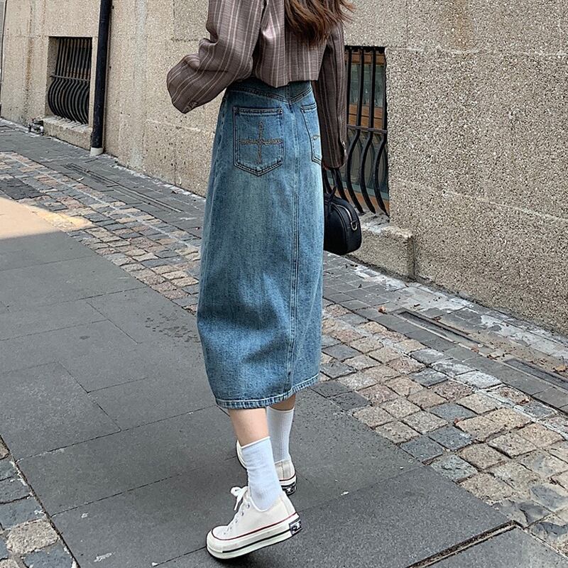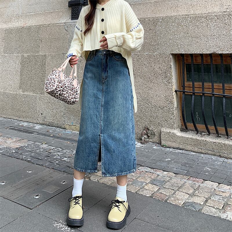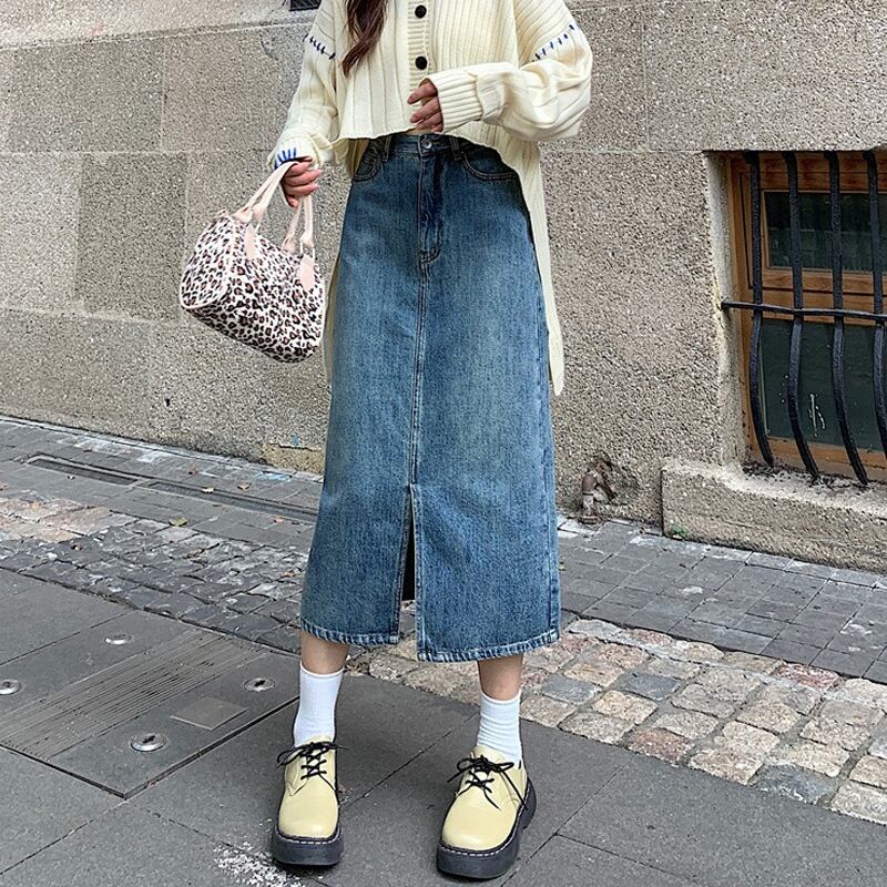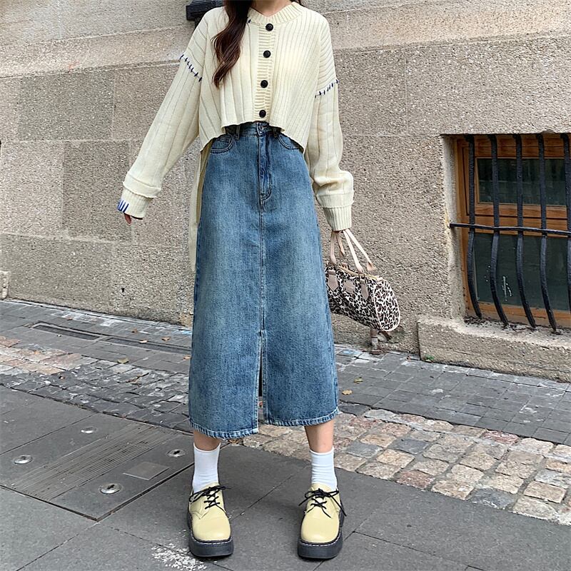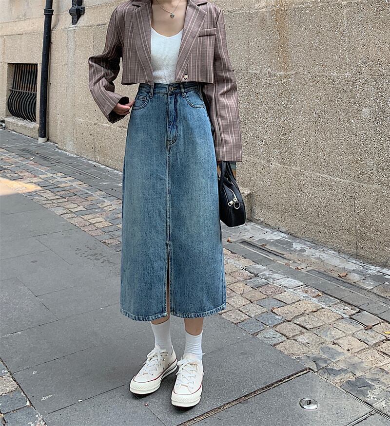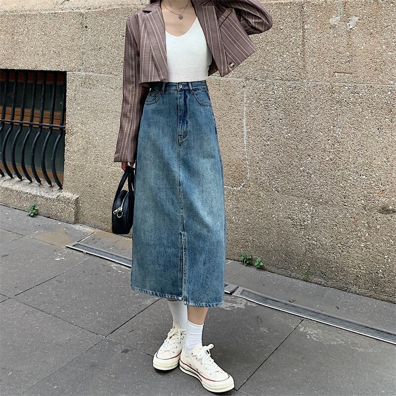 スカート スプリング秋物ハイウェストウェストAラインロング 春物 オータム ウエスト ミドル丈 SYJ94613245986
