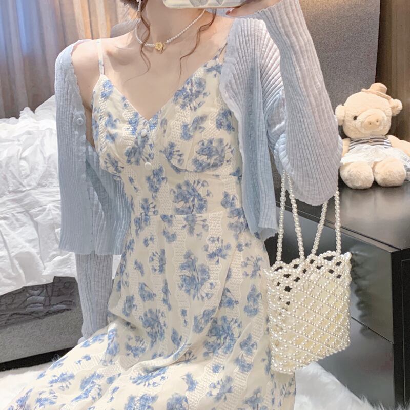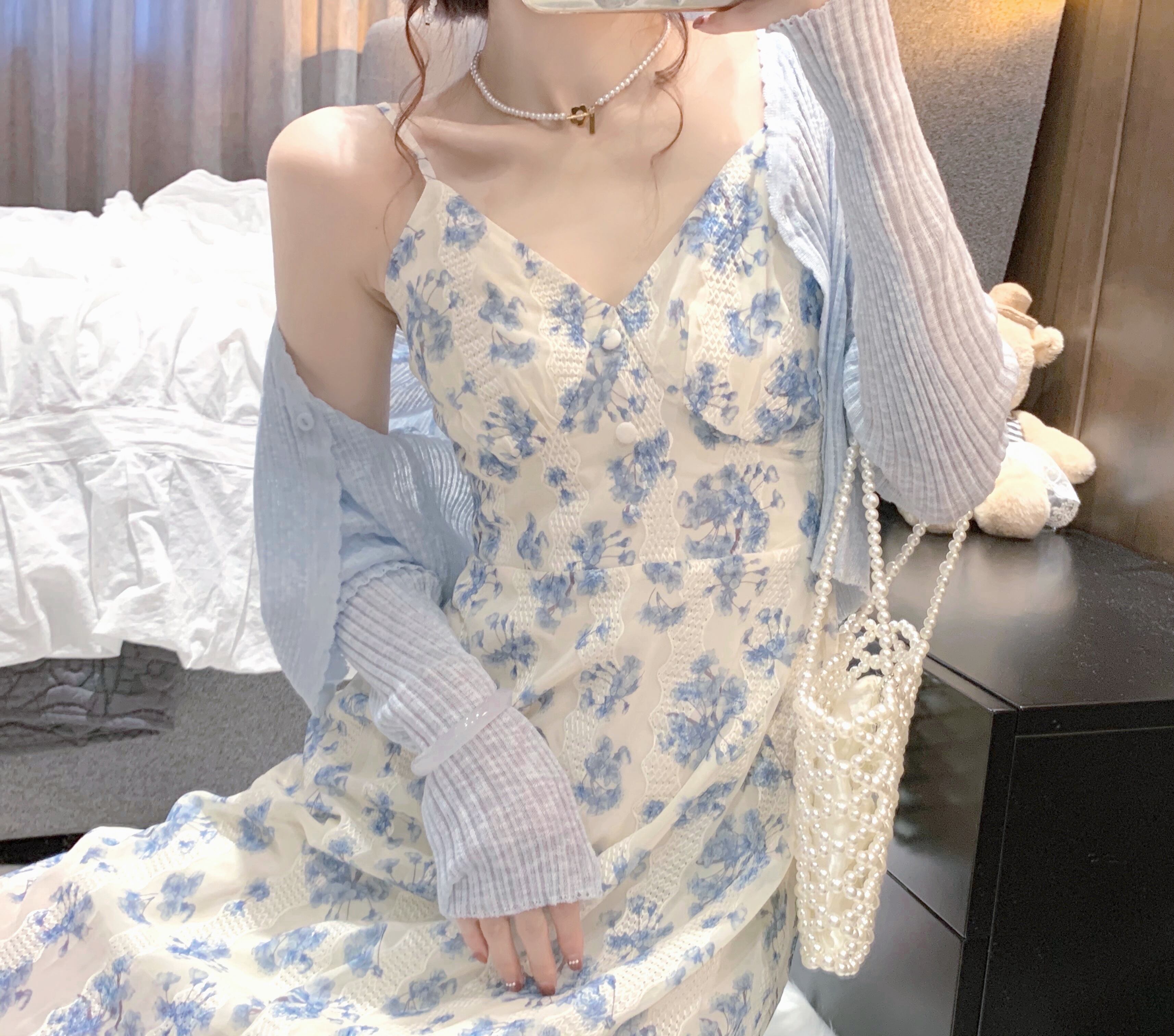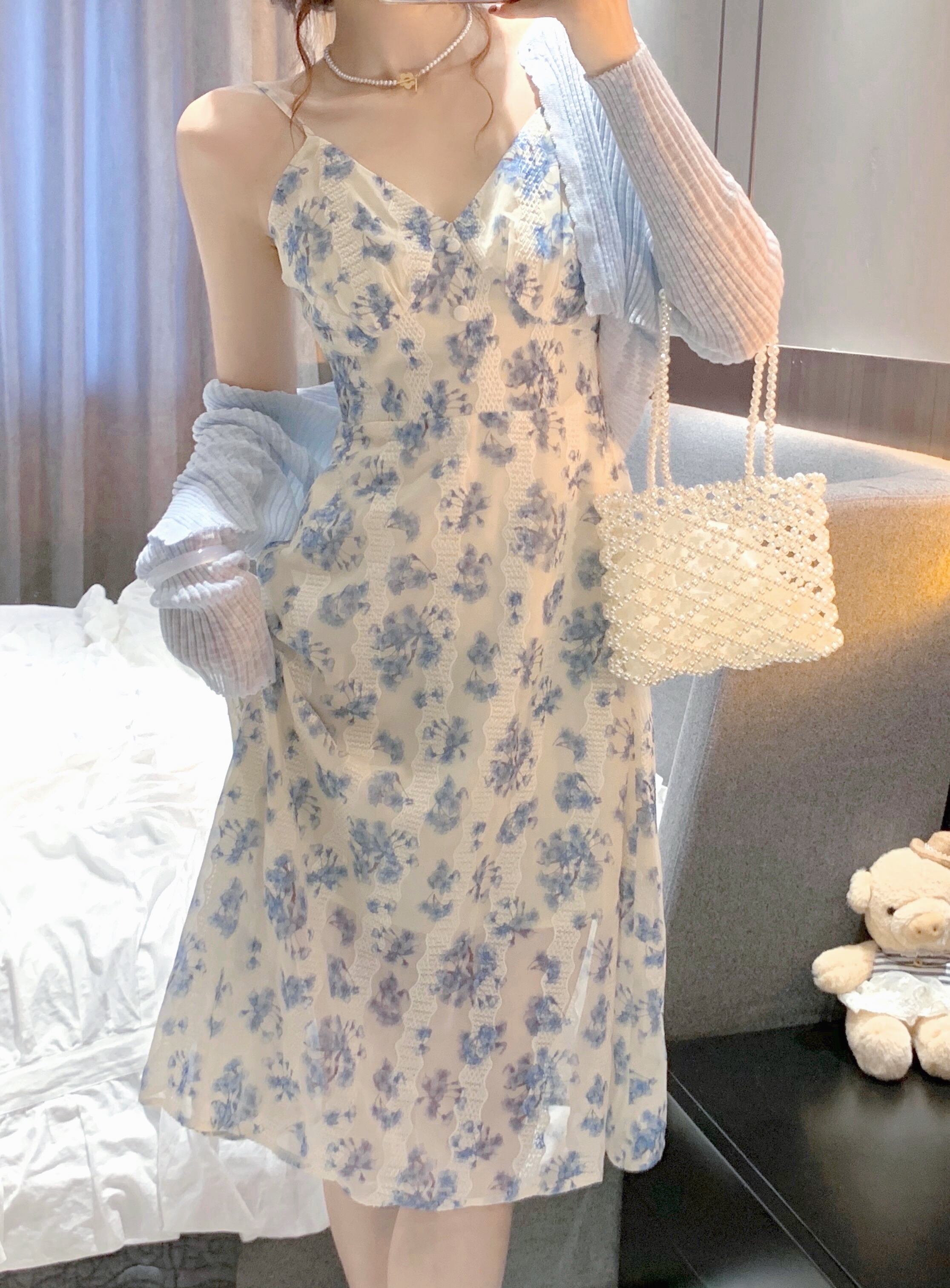 フローラルワンピースレディーススプリングシフォンロングスカート 大人ガーリー スウィート キュート カジュアル 春物 花柄 SYJ292386365