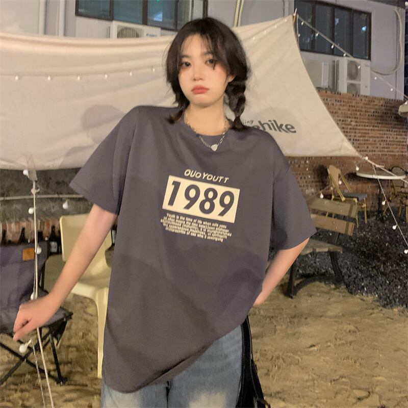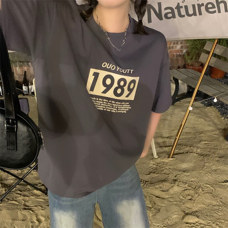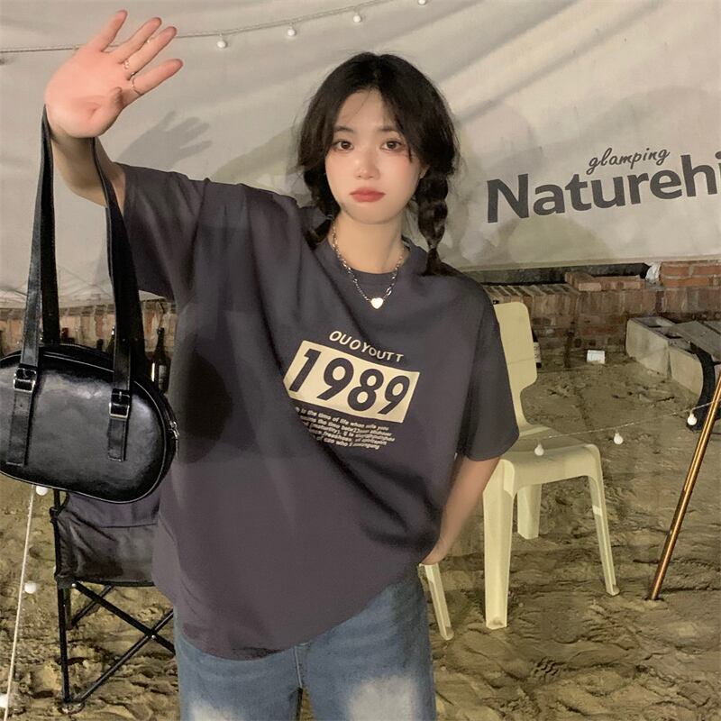 スタンダードグレーTシャツ夏服ルーズトップス NEW レトロ 夏物 SYJ80167018282