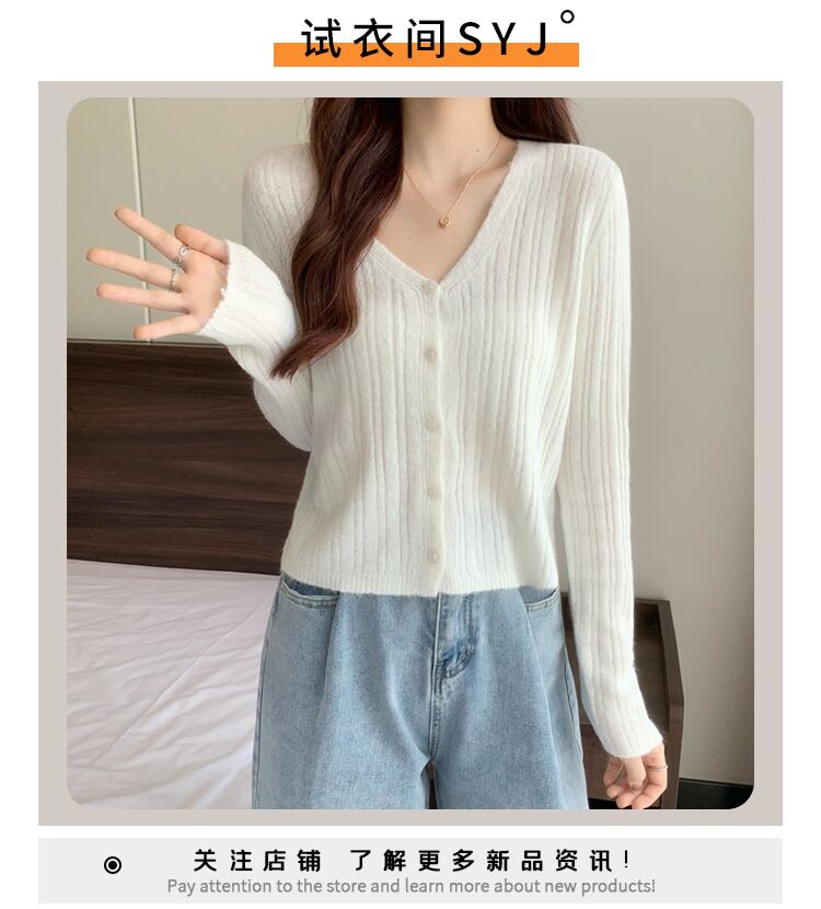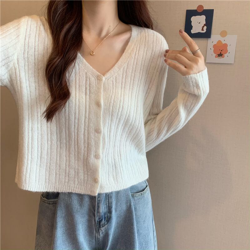 ホワイトニットカーディガンスプリング秋物薄手Vネックセーター コート ロング 春物 オータム 長袖 SYJ4819413865