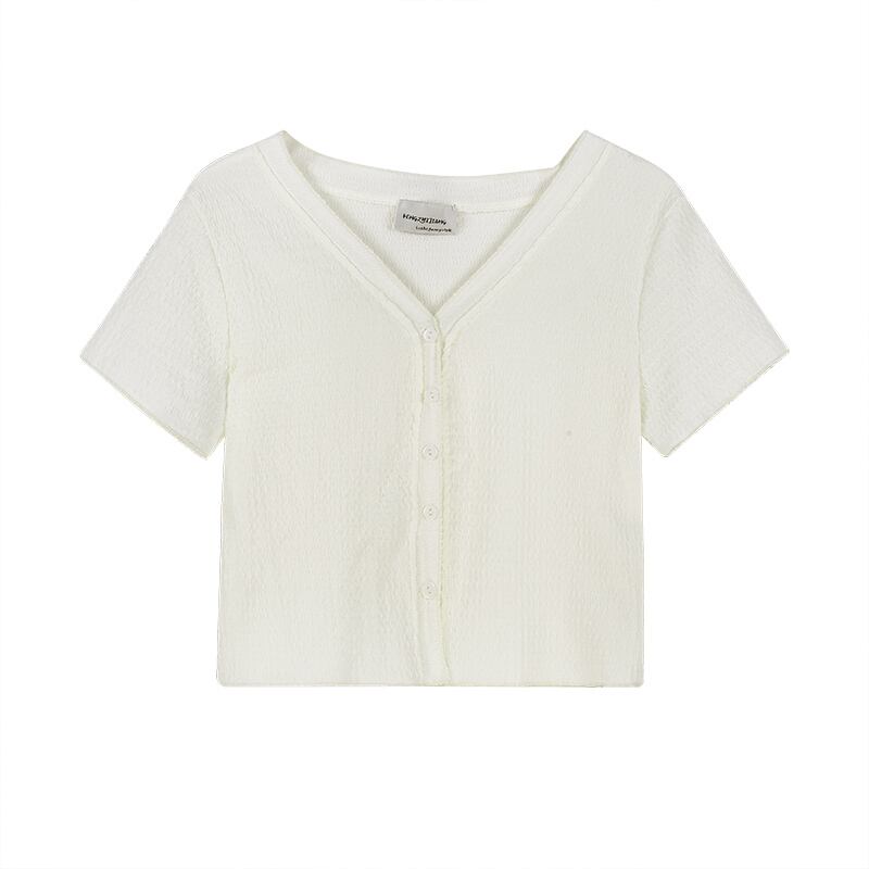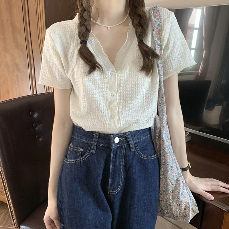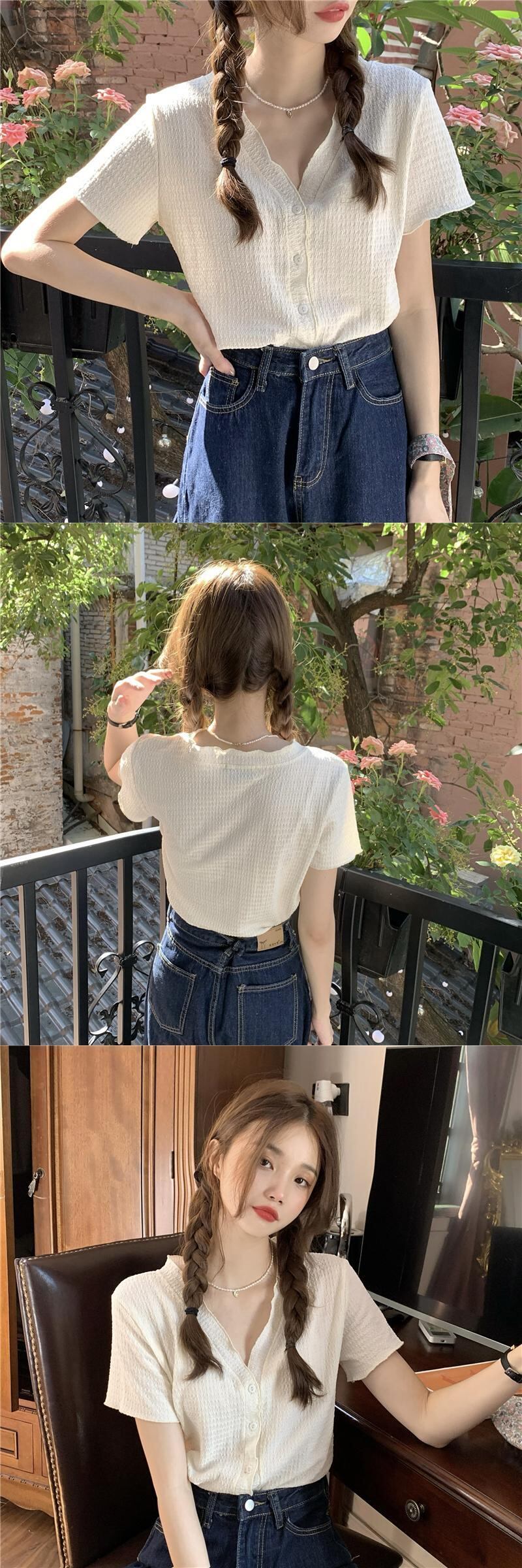 韓国ファッショントップス 夏服Vネックシャツ 大人ガーリー スウィート キュート カジュアル 夏物 SYJ17875061157