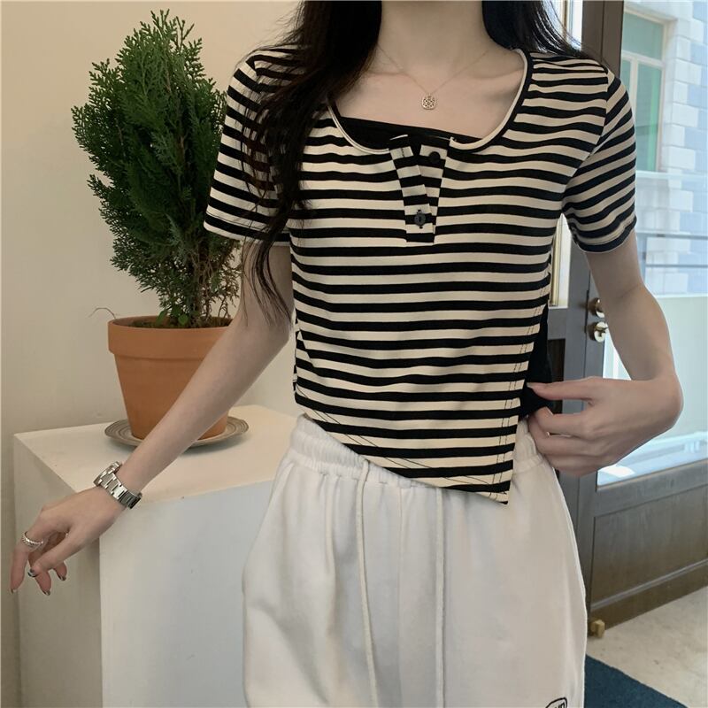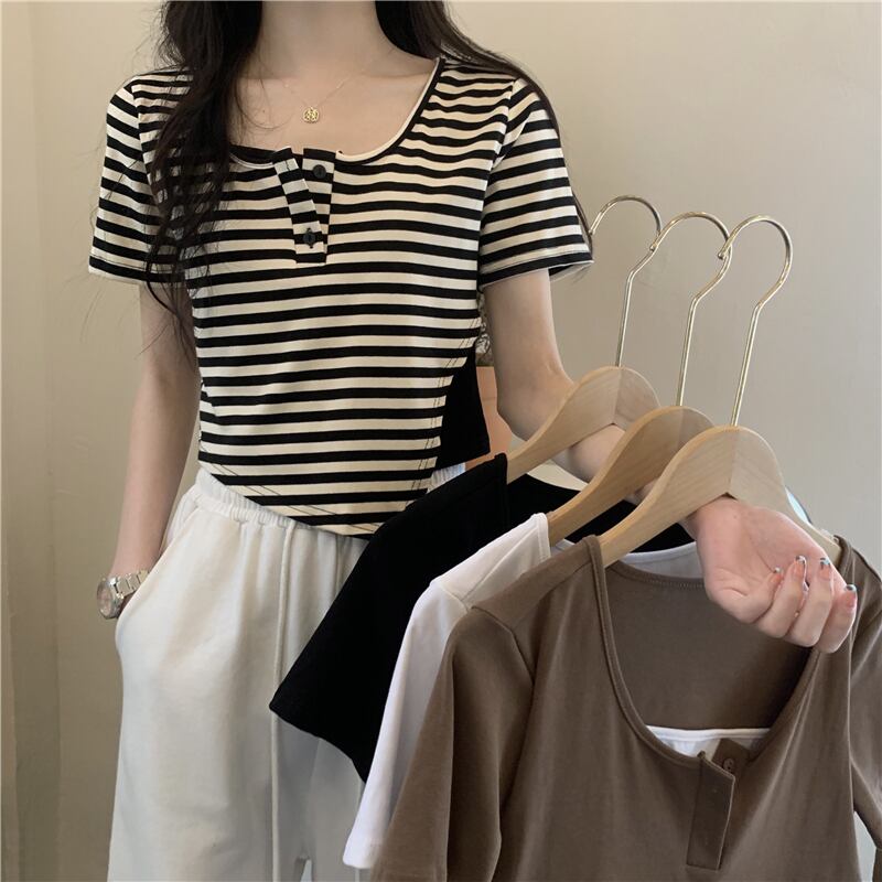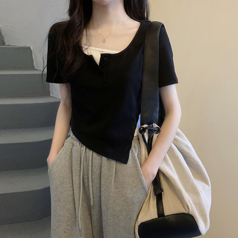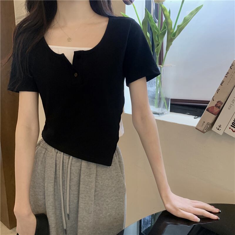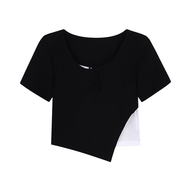 ショートTシャツ夏服ブラックスリムトップス NEW コットン 夏物 SYJ89417735804