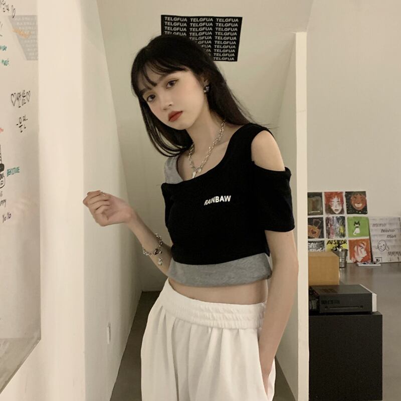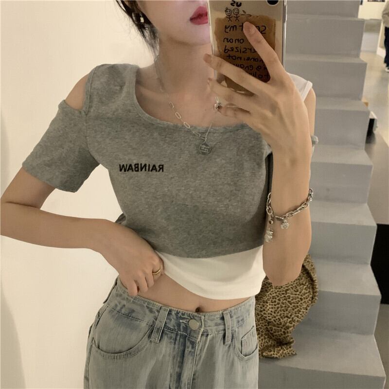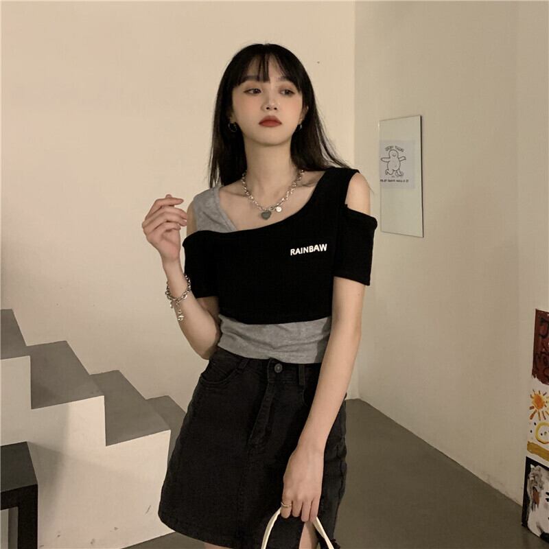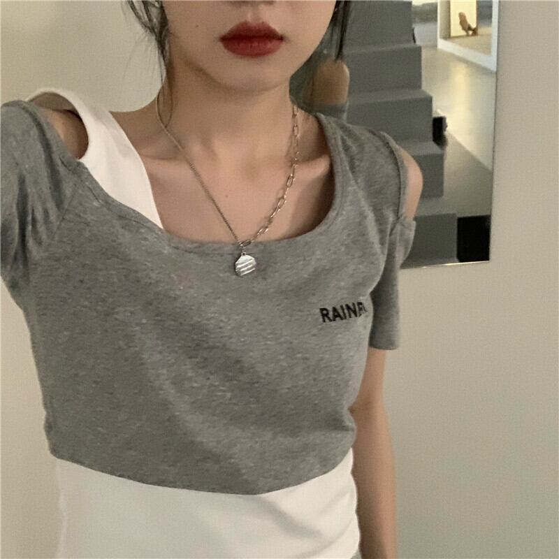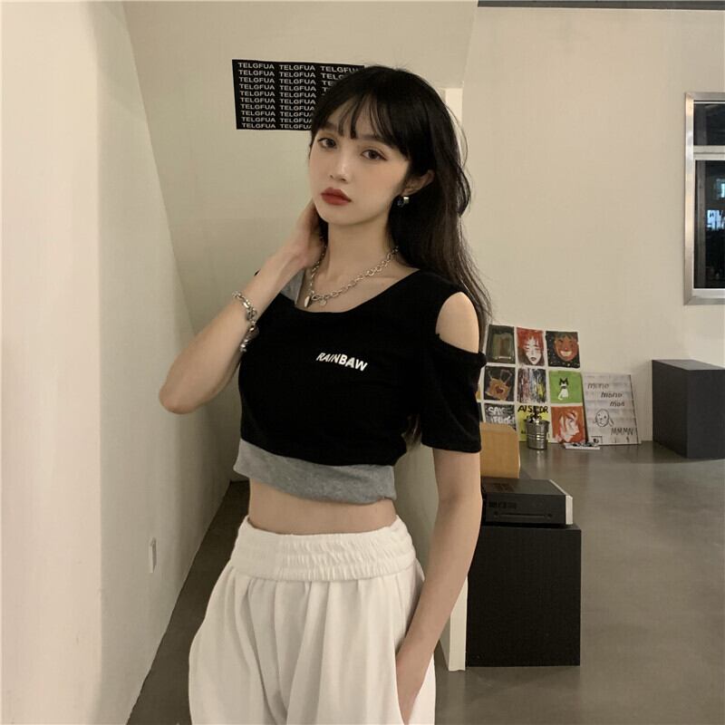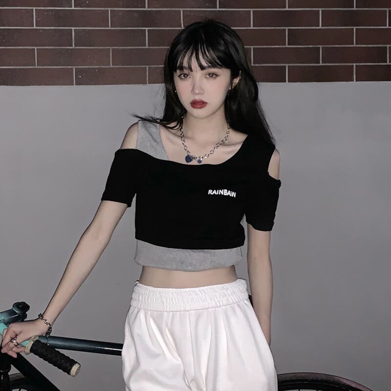 ショートトップス 夏服TシャツNEW 夏物 オフショルダー ピュア SYJ26711899345