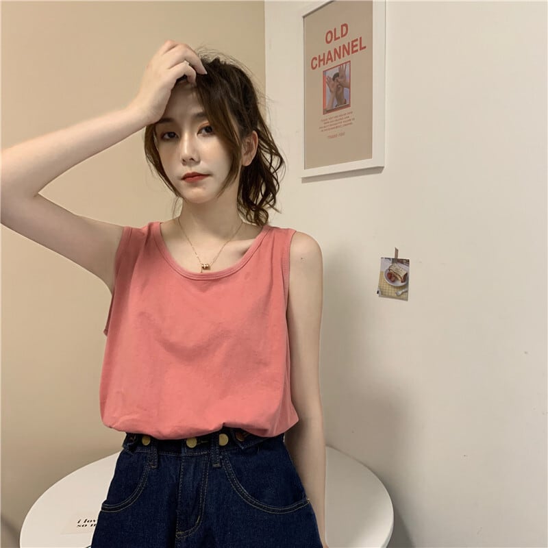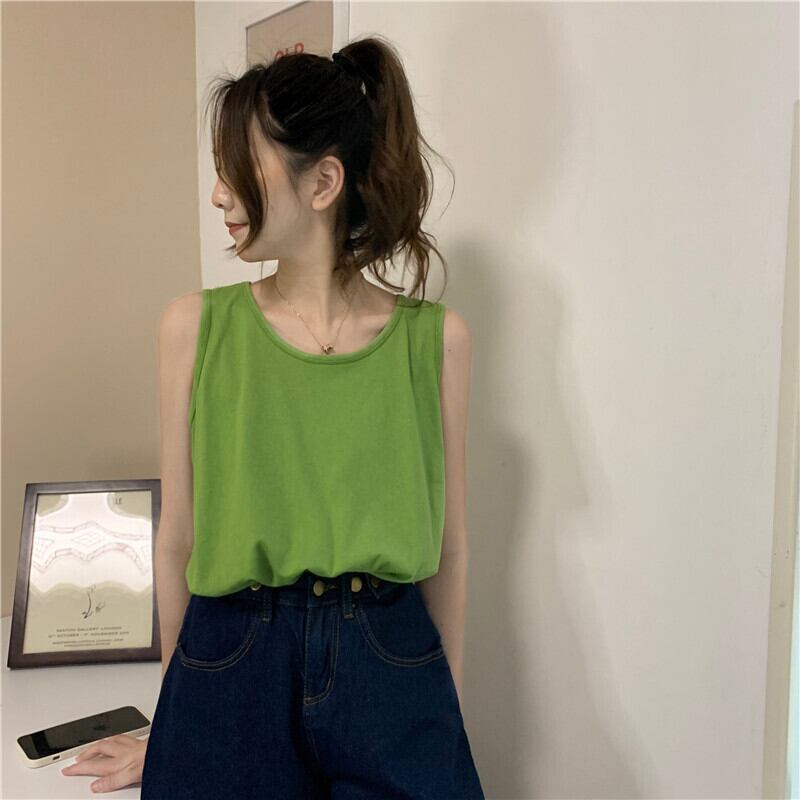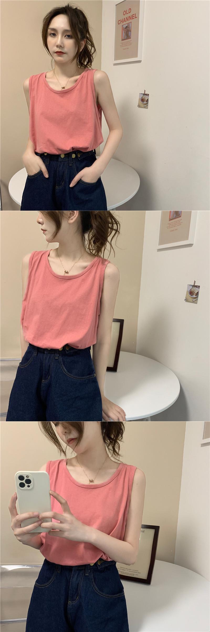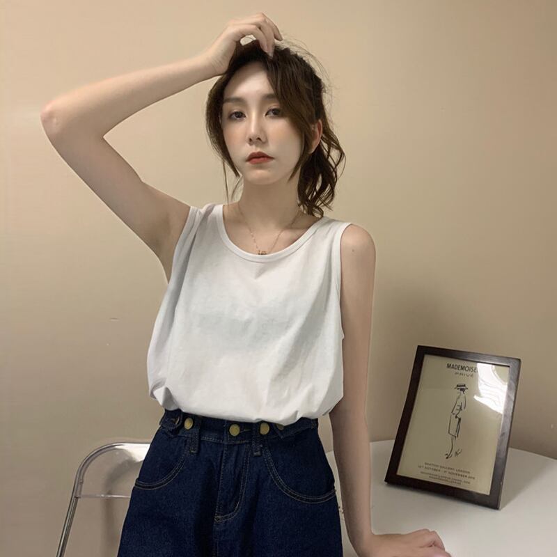 ホワイト夏服ノースリーブNEW コットン 夏物 Tシャツ SYJ64920628749