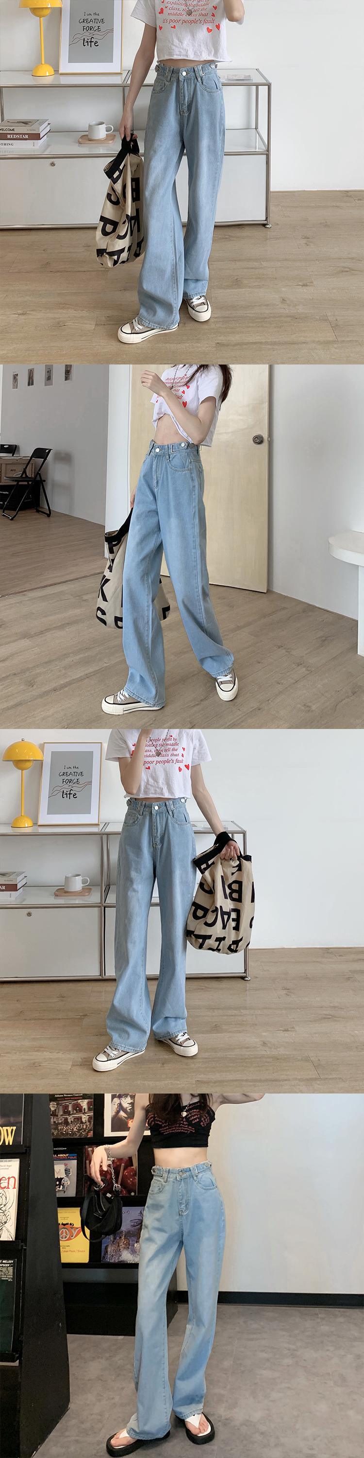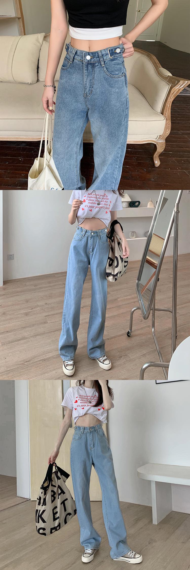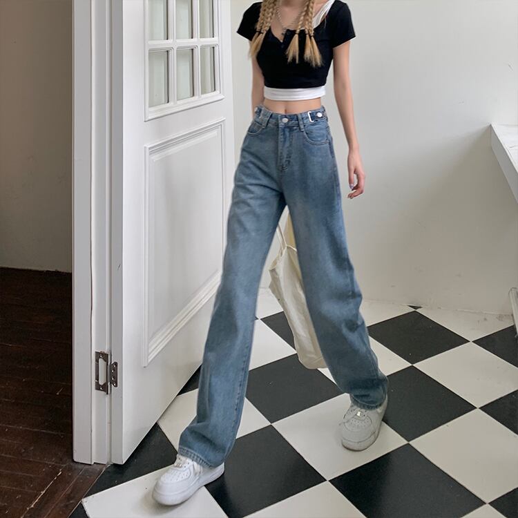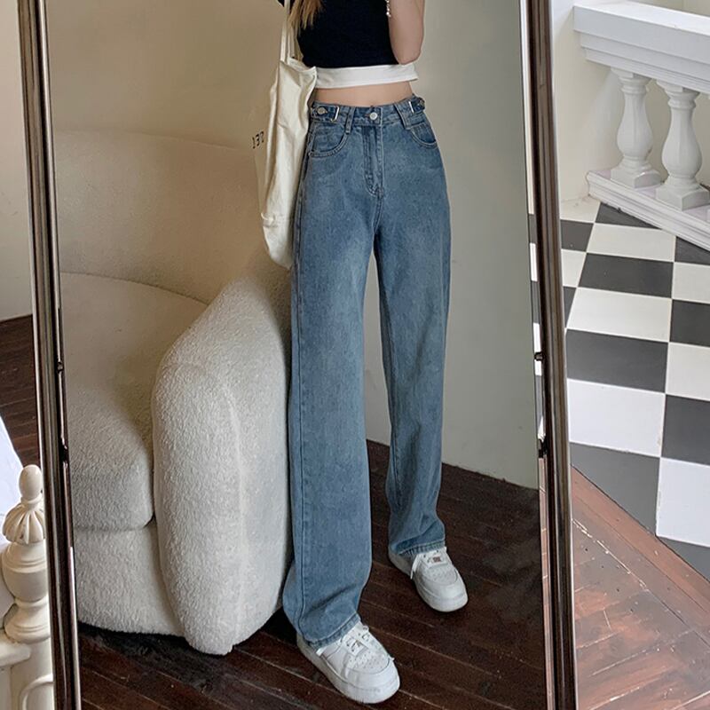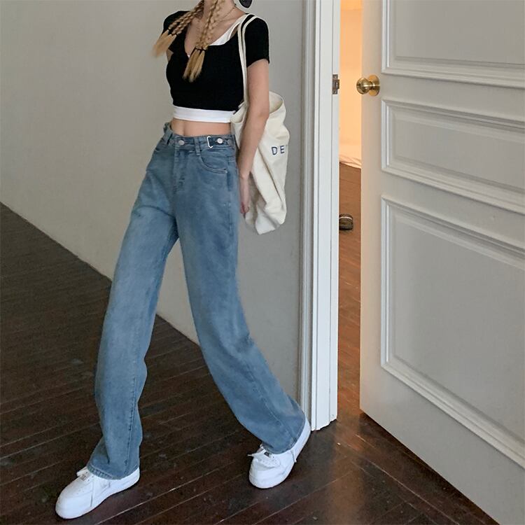 ダークブルージーンズ スプリング秋物ウェスト薄手ワイドレッグパンツ ルーズ 春物 オータム ワイドパンツ ウエスト SYJ34810313836
