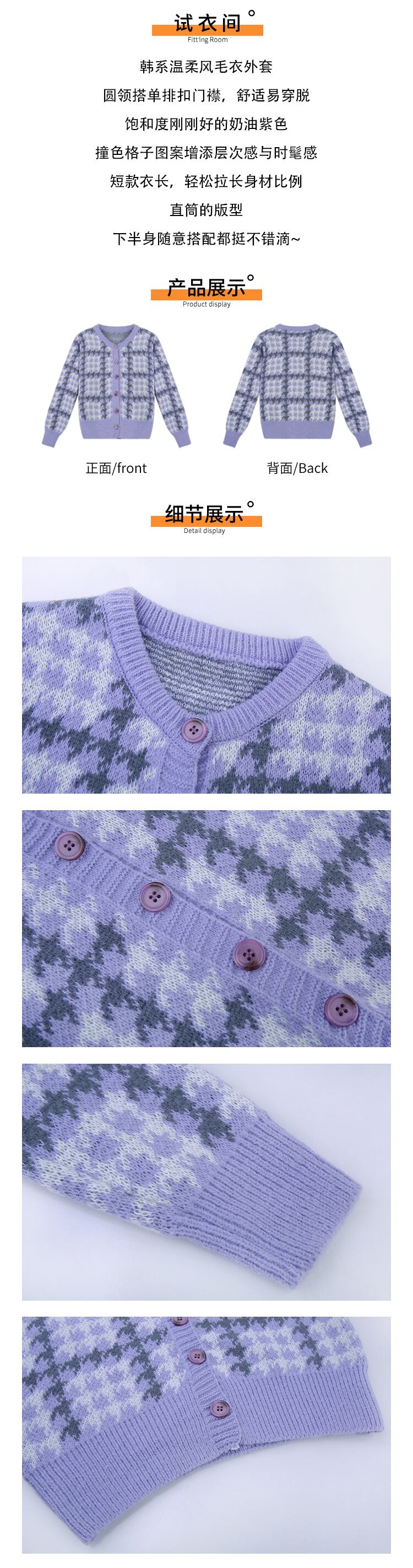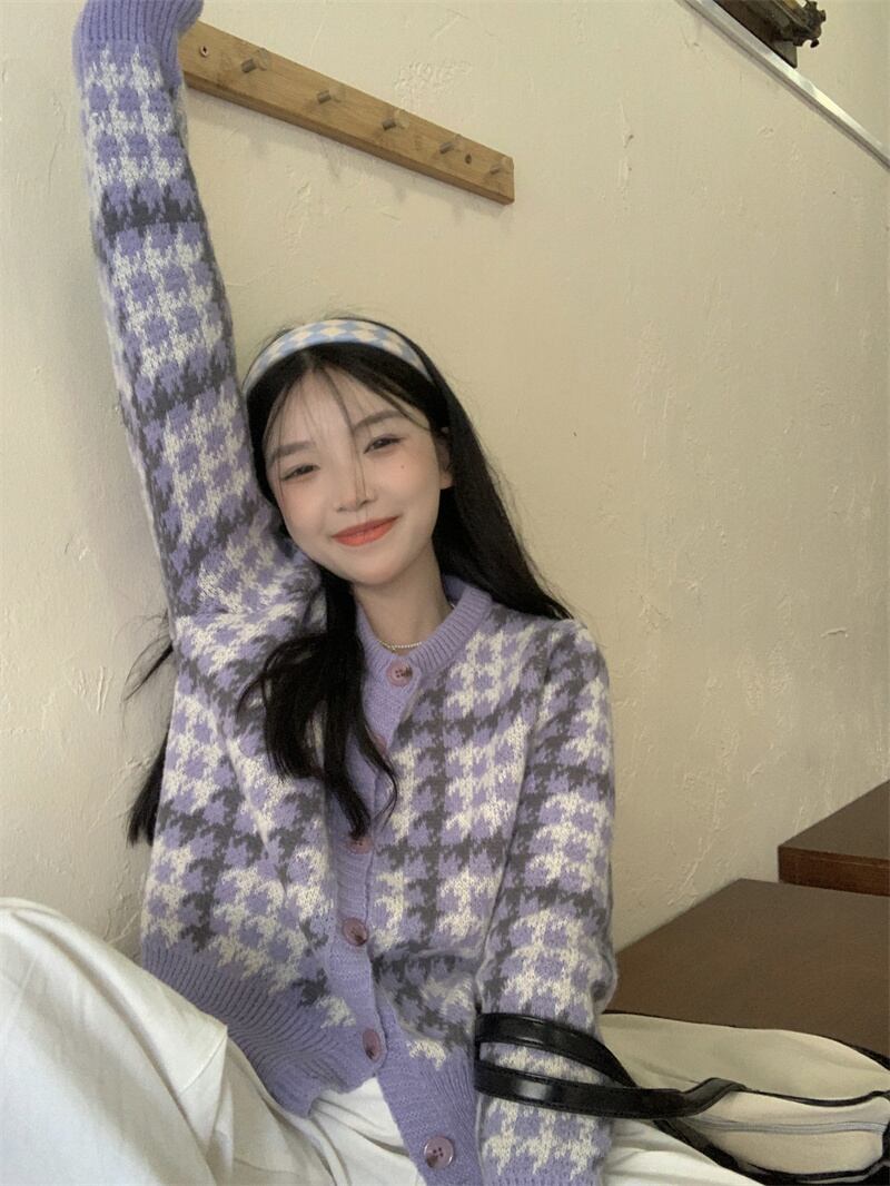 セーター ジャケット スプリング秋物ショートニットカーディガン 春物 オータム パープル SYJ98196771198