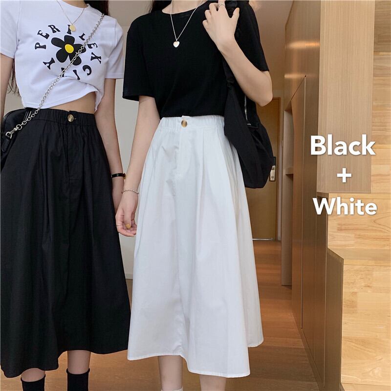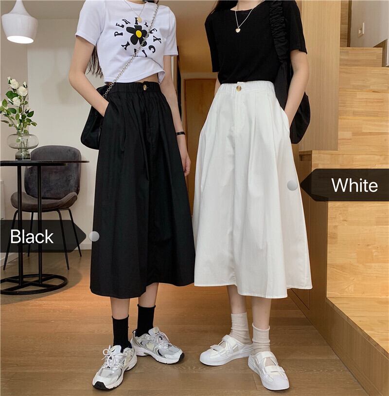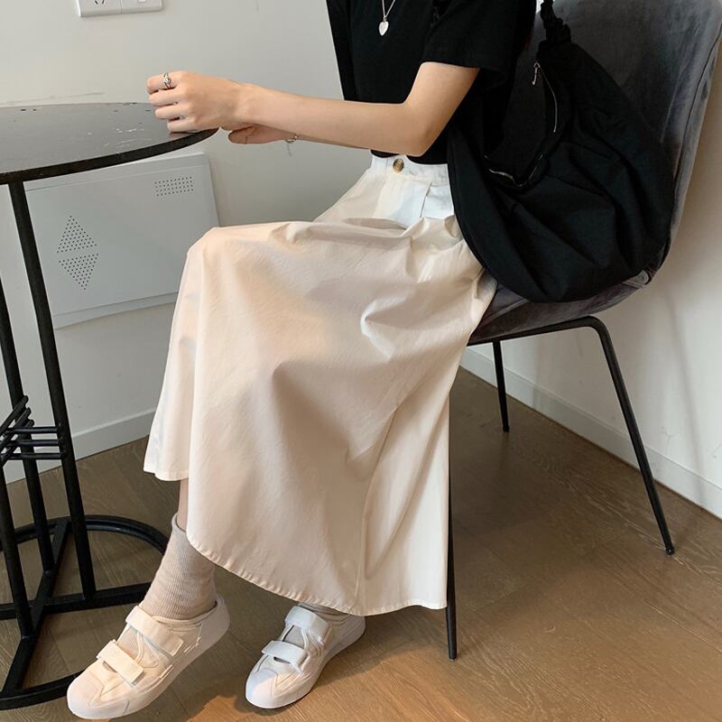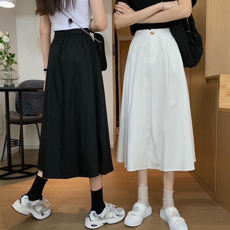 ブラックスカート 夏服ハイウェストAライン 夏物 ウエスト ミドル丈 SYJ64465886816
