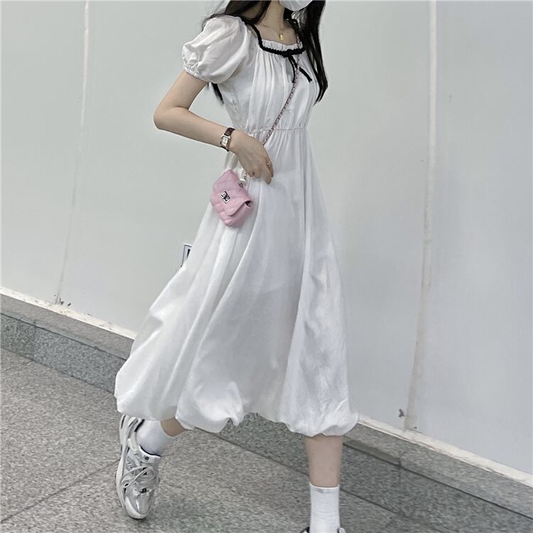 ワンピース夏服韓国ファッションロングスカート 夏物 パフスリーブ SYJ89885378640