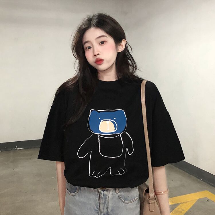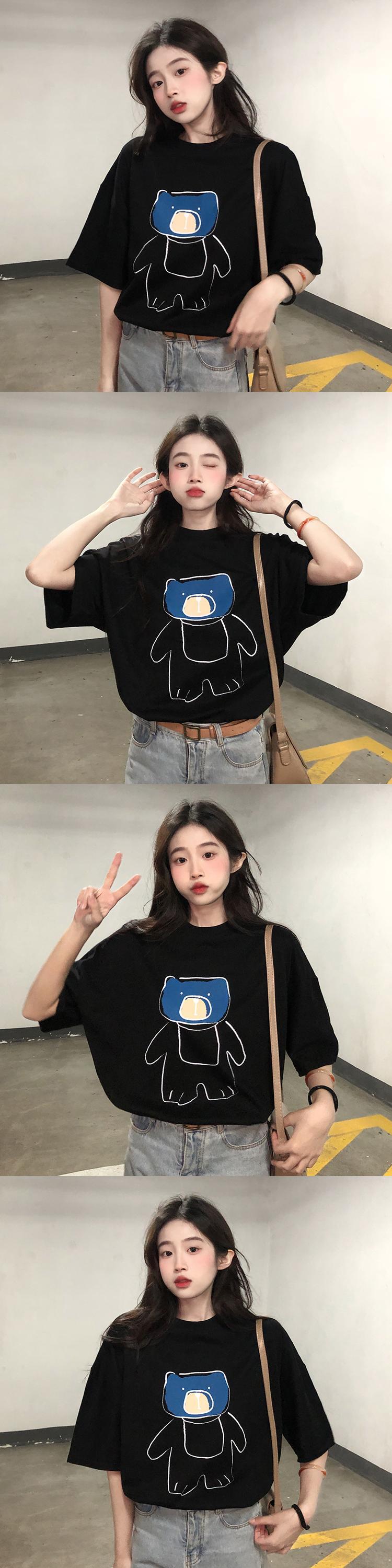 色:ホワイトハーフカラーベアTシャツ,ブラックハーフカラーベアTシャツ