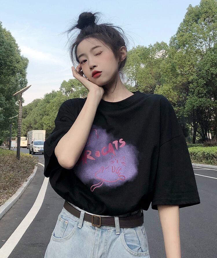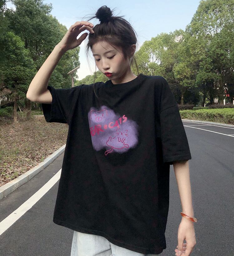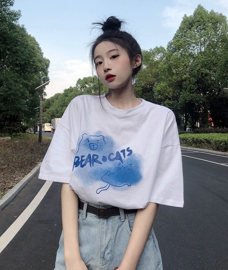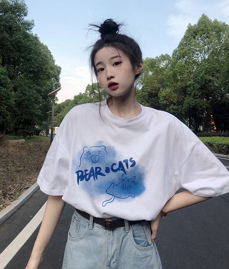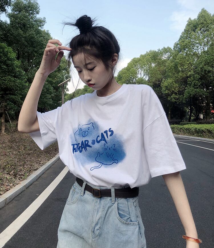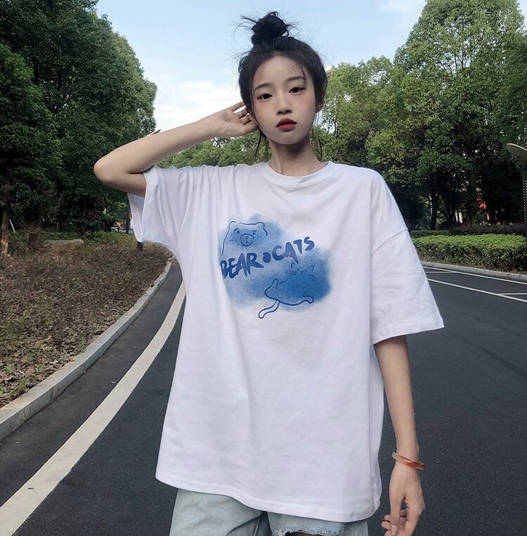 ホワイトTシャツ夏服ルーズ韓国ファッショントップス コットン 夏物 スタイル SYJ91619651322