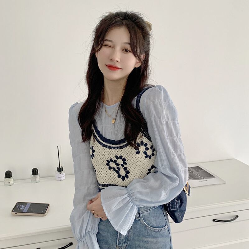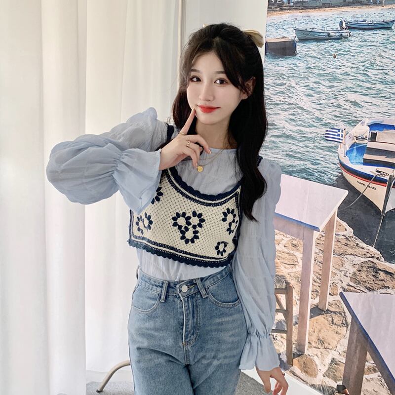 ブルーシャツ スプリングスタイルトップス ロング 春物 長袖 SYJ29550120601