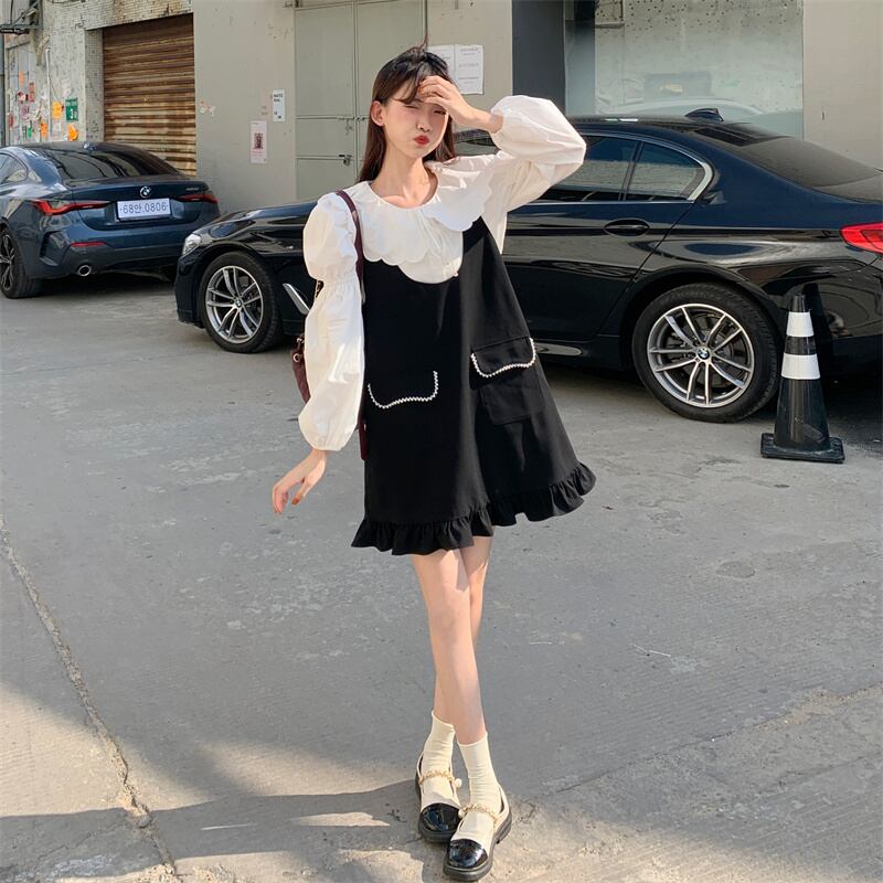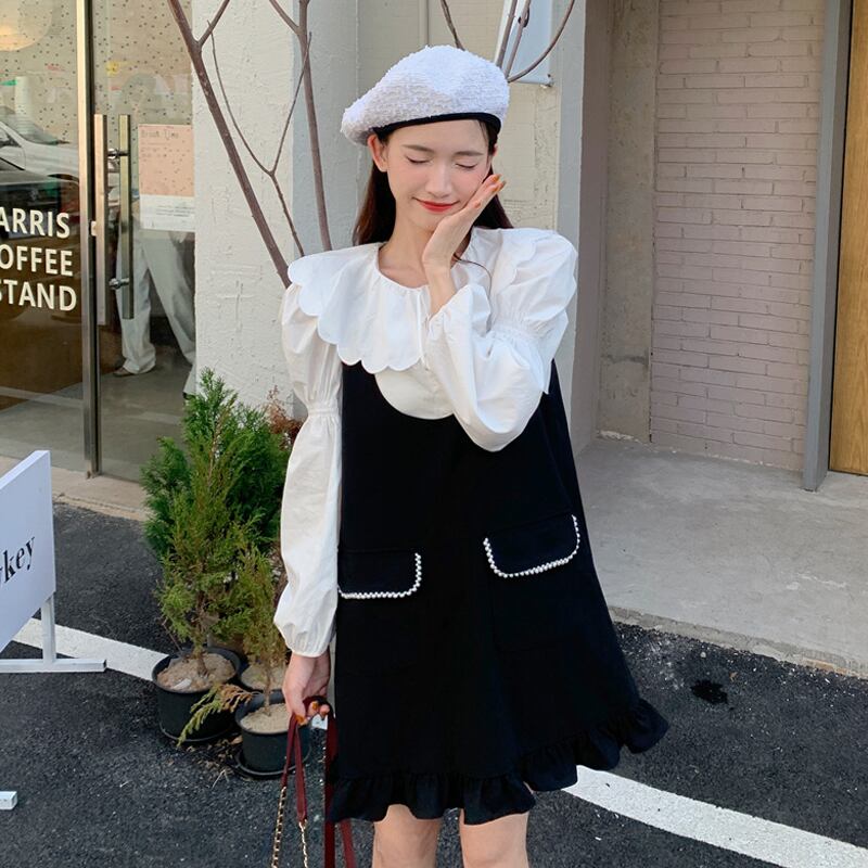 色:白いシャツのワンピース,ブラックストラップドレスワンピース