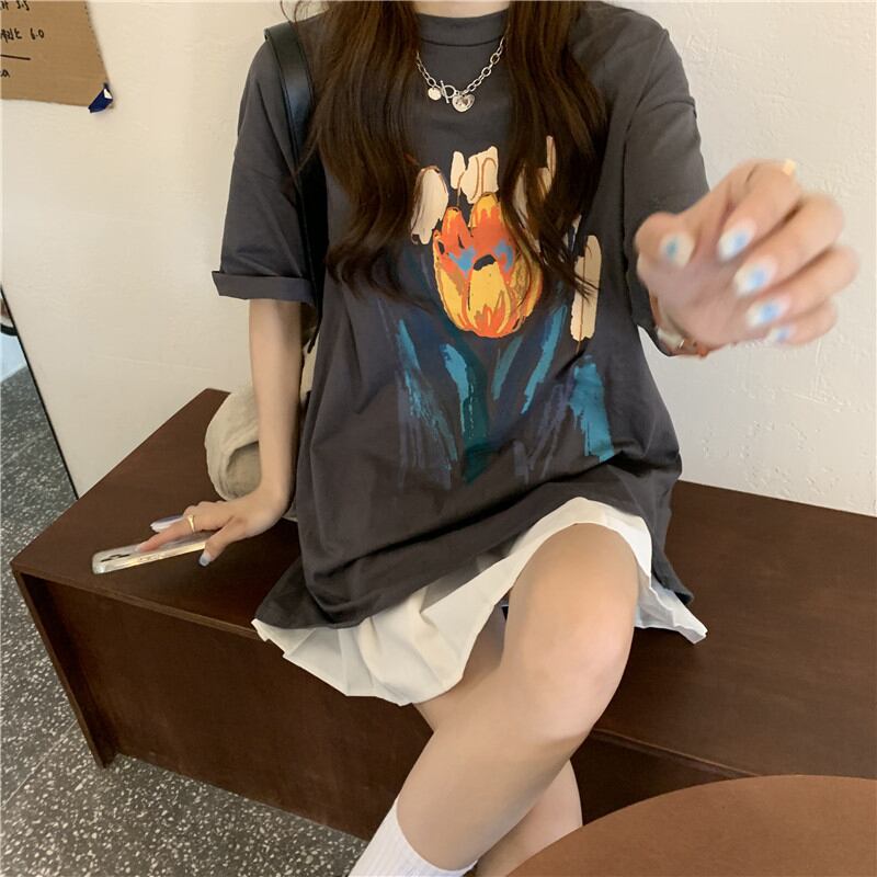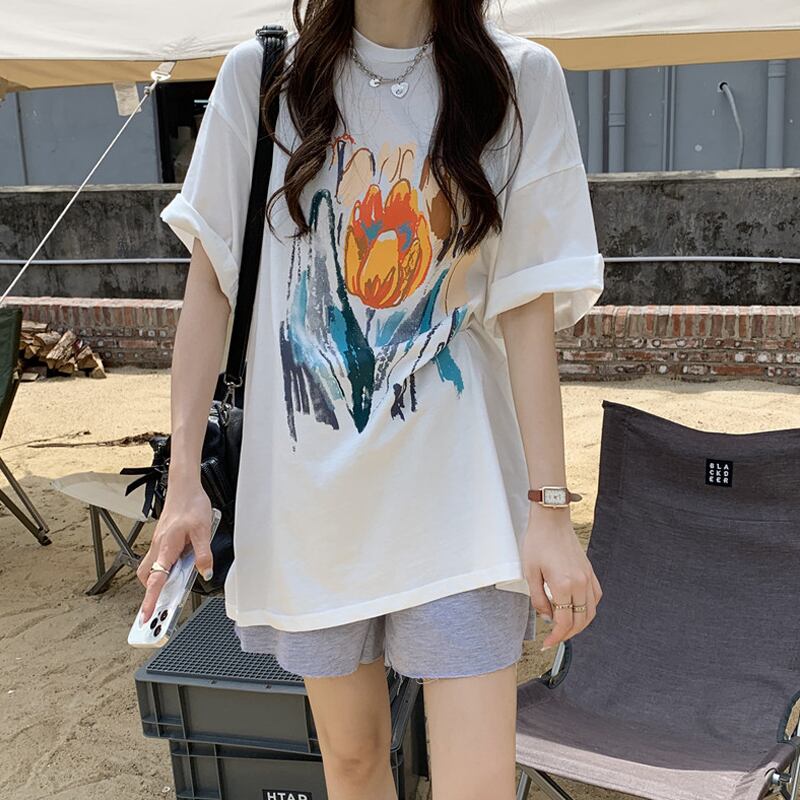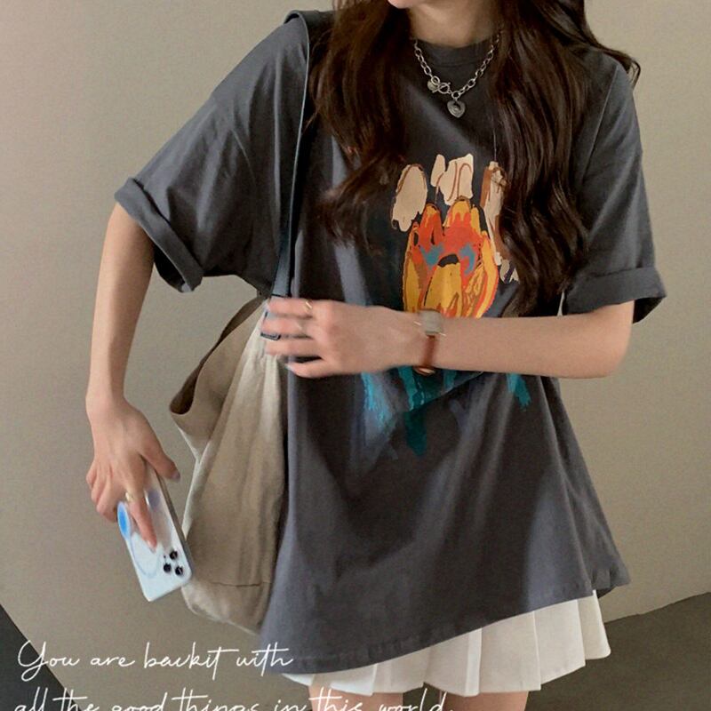 Tシャツ夏服ルーズ韓国ファッションオーバーサイズトップス NEW コットン 夏物 スタイル ミドル丈 SYJ4248730949