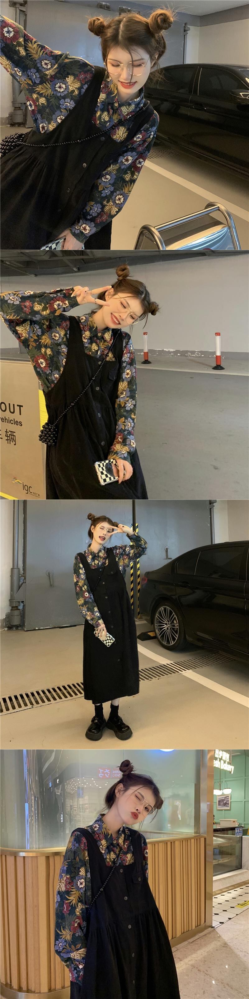 色:黒スカートワンピース,シングルカーキスカート,黄色のシャツワンピース,青紫のシャツ