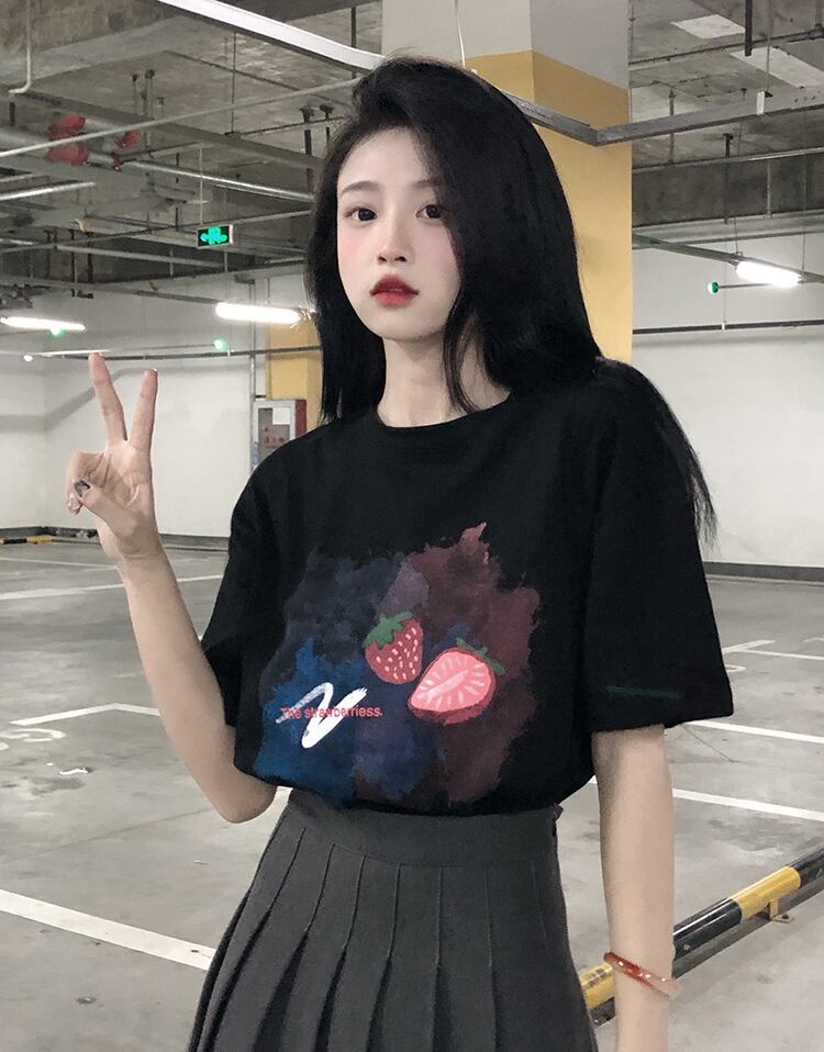 色:ホワイトストロベリーTシャツ,ブラックストロベリーTシャツ