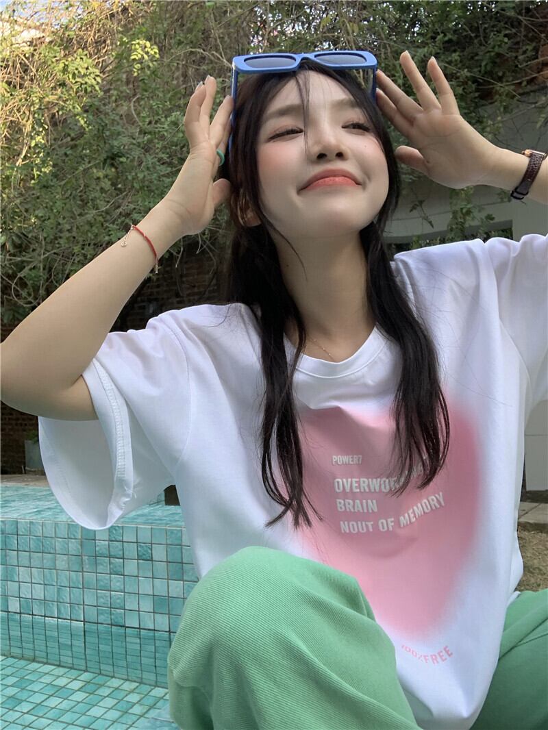 Tシャツ夏服韓国ファッションルーズホワイトトップス NEW 夏物 スタイル SYJ94093206724