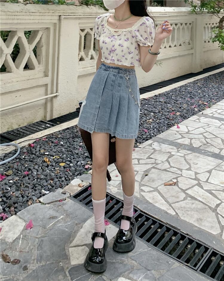 スカート 夏服ハイウェストウェスト薄手Aラインショート 大人ガーリー スウィート キュート カジュアル 夏物 ウエスト SYJ8053364631