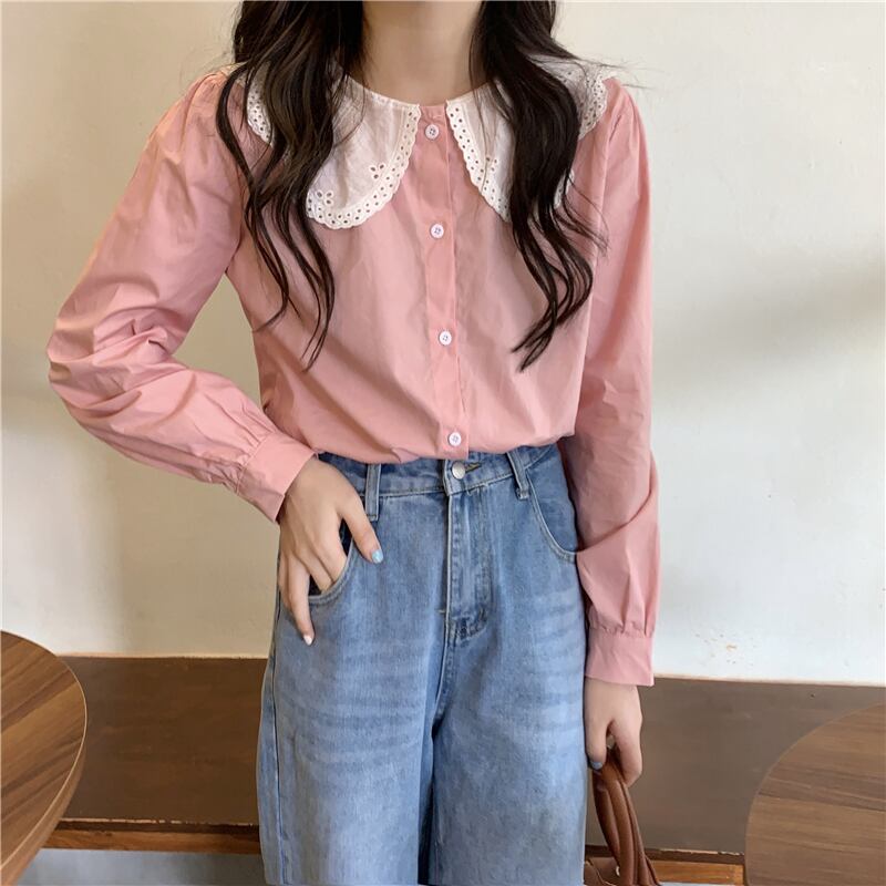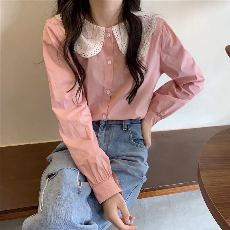 カラーシャツ スプリング秋物トップス ロング 大人ガーリー スウィート キュート カジュアル 春物 オータム 長袖 SYJ14427535788