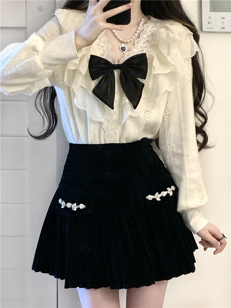 色:ワンピースボウシャツ,ワンピースラインストーンスカート