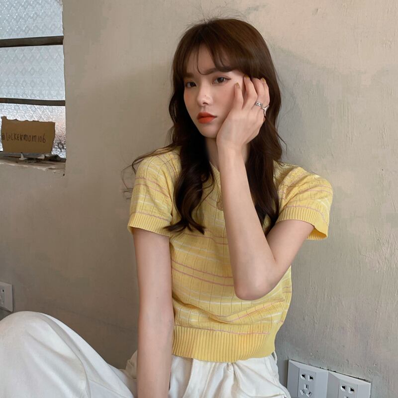 ショートトップス 夏服ニットTシャツNEW 夏物 SYJ58399226453