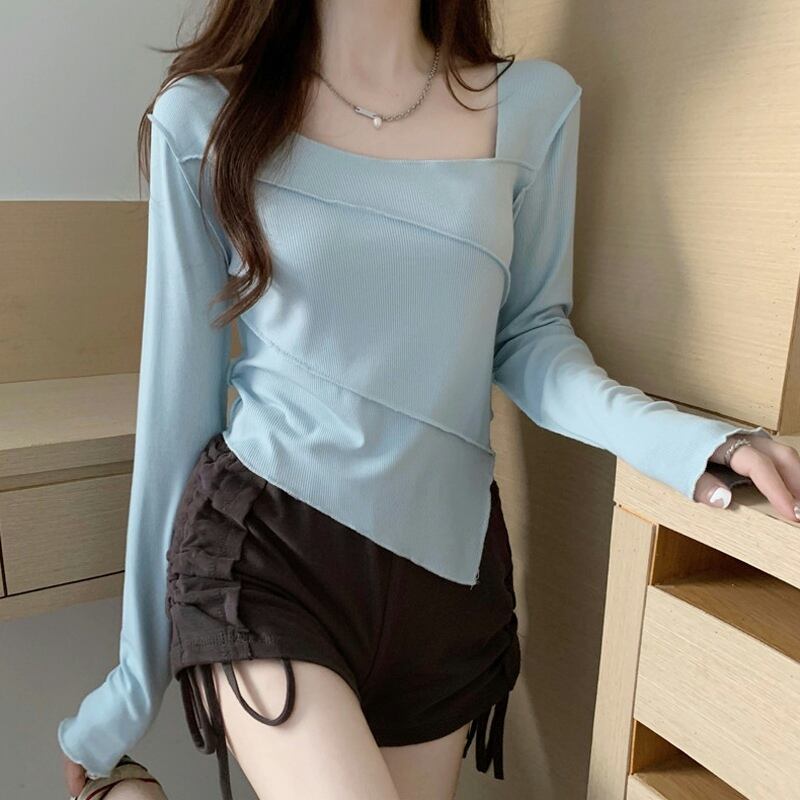 ショートトップス スプリング秋物スリムフィットゆったりシャツ ロング 大人ガーリー スウィート キュート カジュアル 春物 オータム 長袖 SYJ82050903469