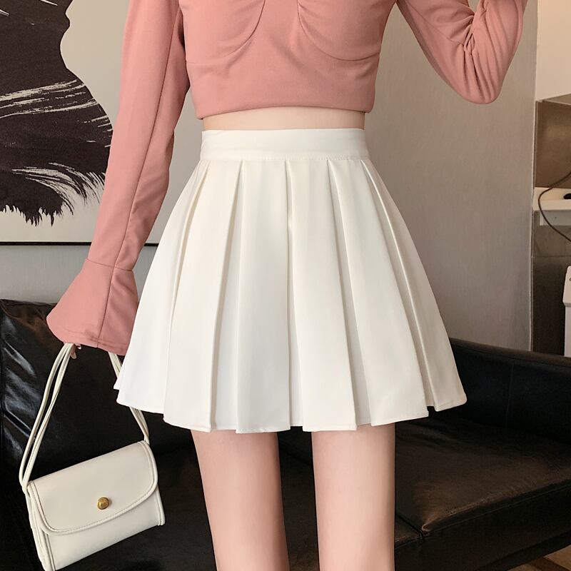 ホワイトプリーツスカート スプリングハイウェストスリムAラインショート 春物 ウエスト SYJ50500908541