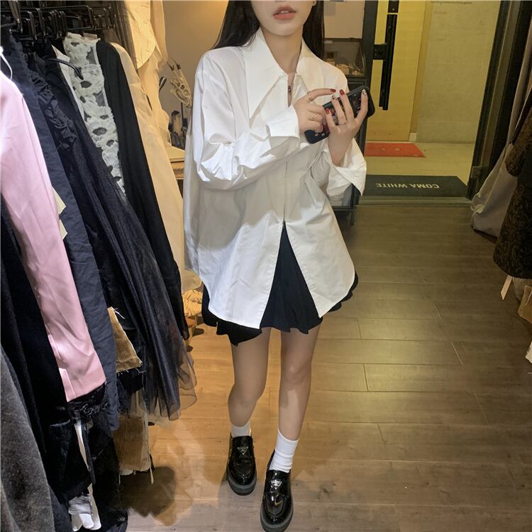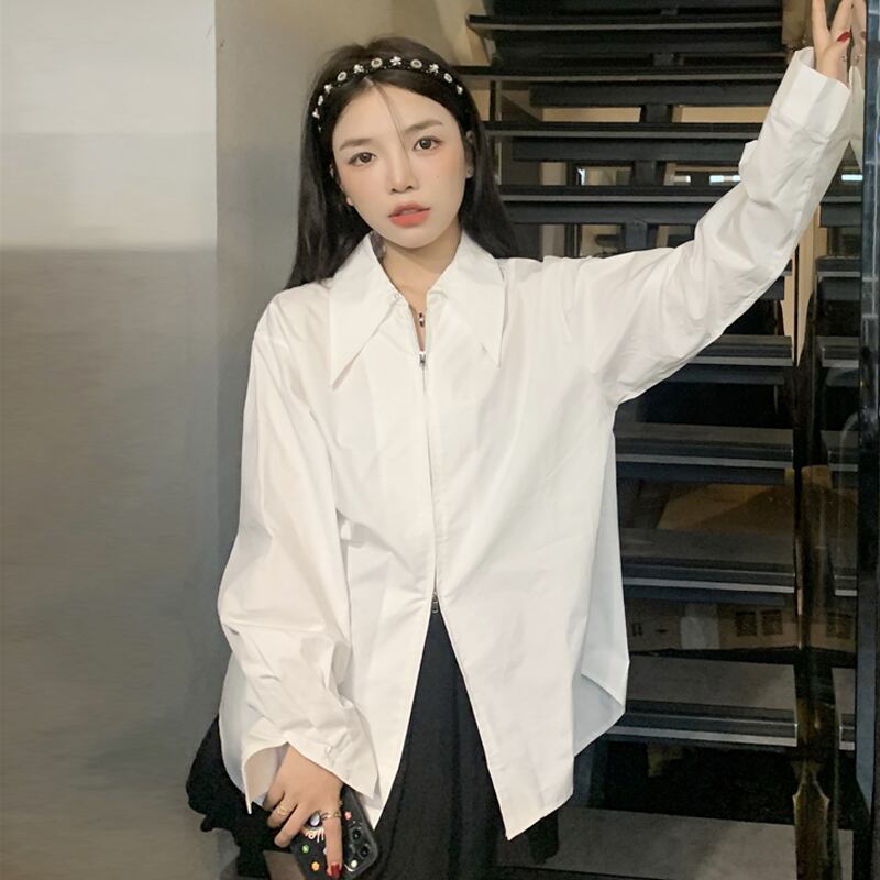 ホワイトシャツ スプリング韓国ファッションスタイルNEWジッパー ロング 春物 長袖 SYJ39463937990
