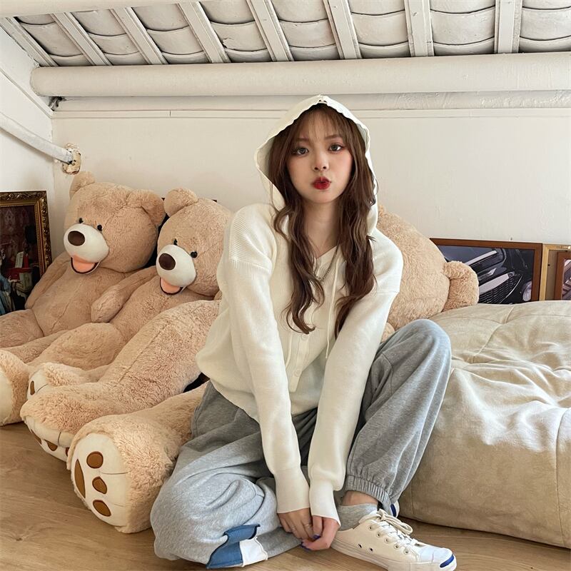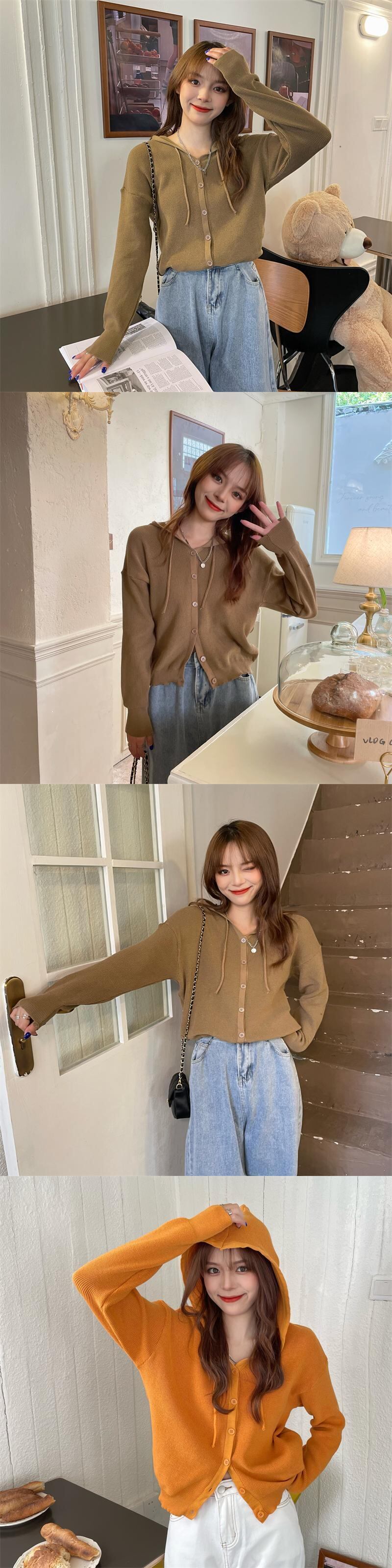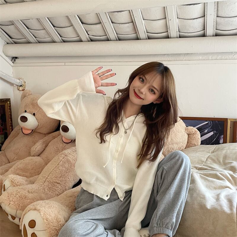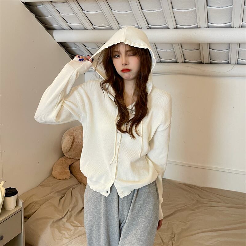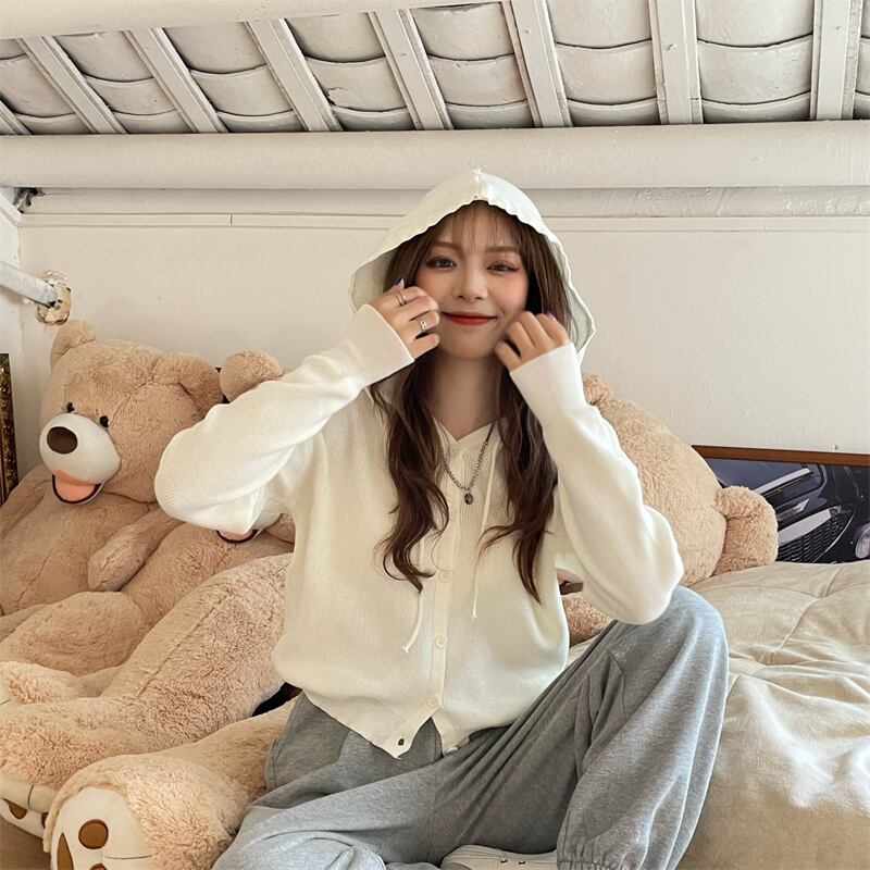 フードニットカーディガンジャケット スプリング薄手韓国ファッショントップス 春物 SYJ8204300655