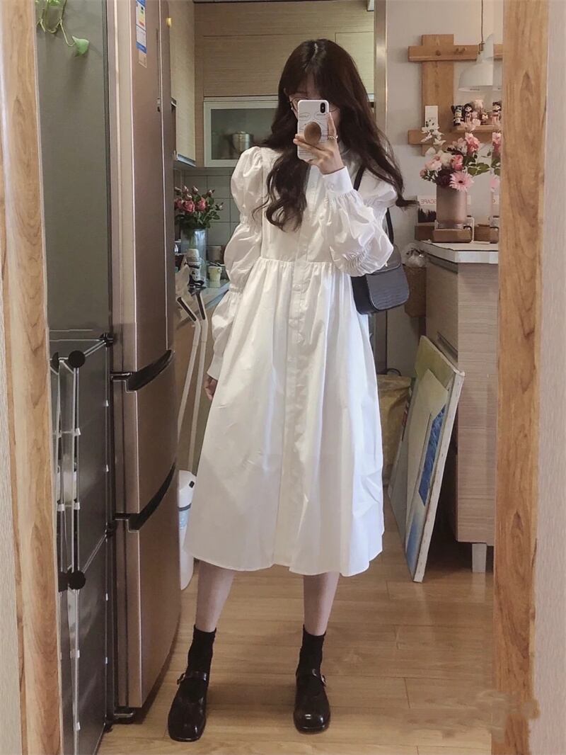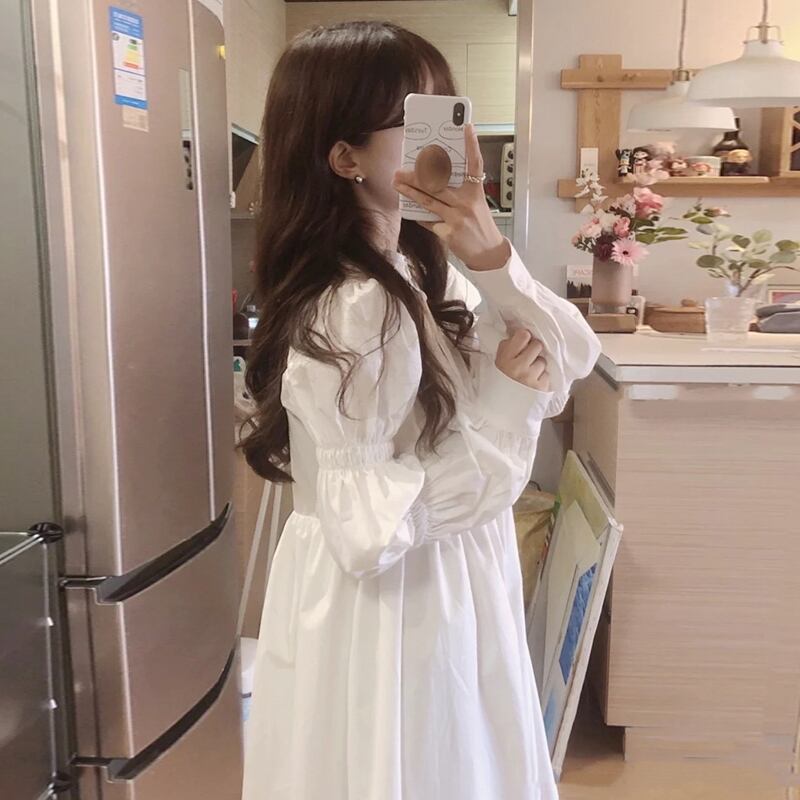 ホワイトスリーブワンピーススプリングウェストロングスカート 春物 ウエスト SYJ29144534137
