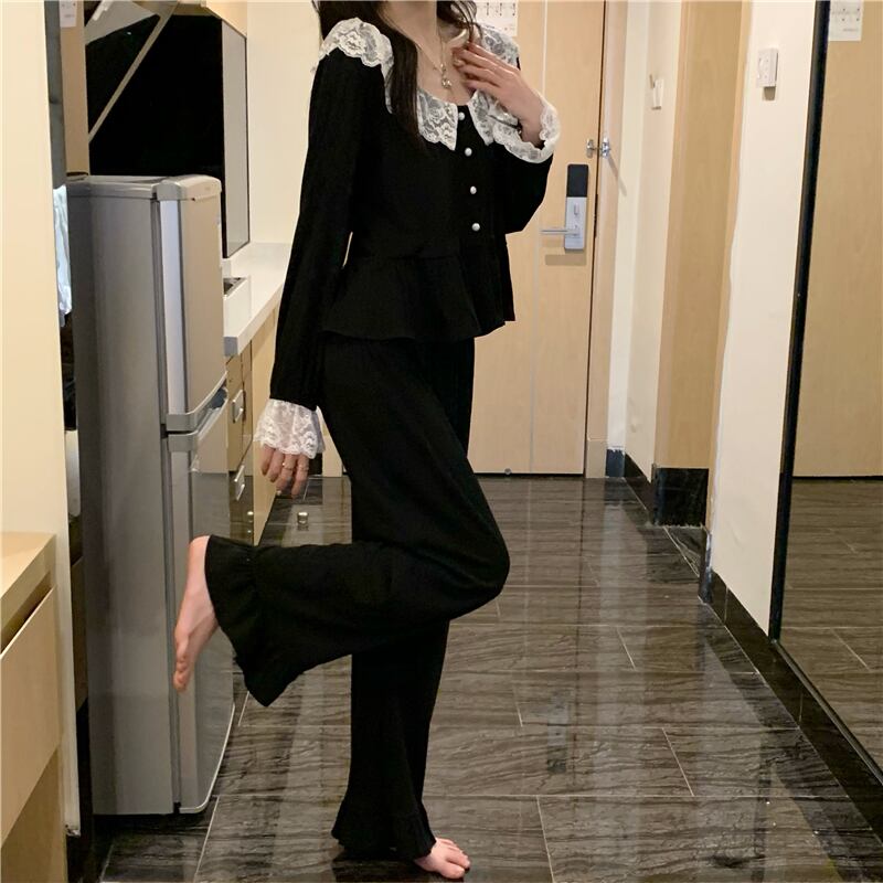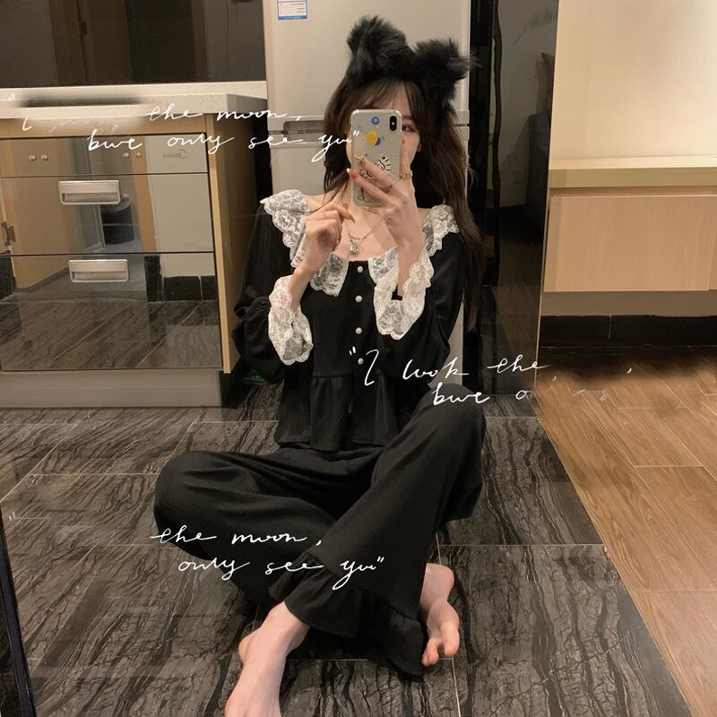 ブラックパジャマ ルームウェアレディーススプリングNEWスタイル ロング 春物 長袖 SYJ5222437538