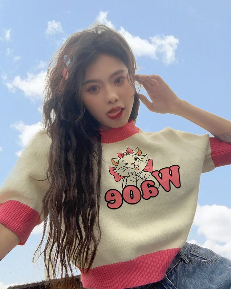 ニットショートセーター 夏服トップス 大人ガーリー スウィート キュート カジュアル 夏物 ピュア SYJ8046332226