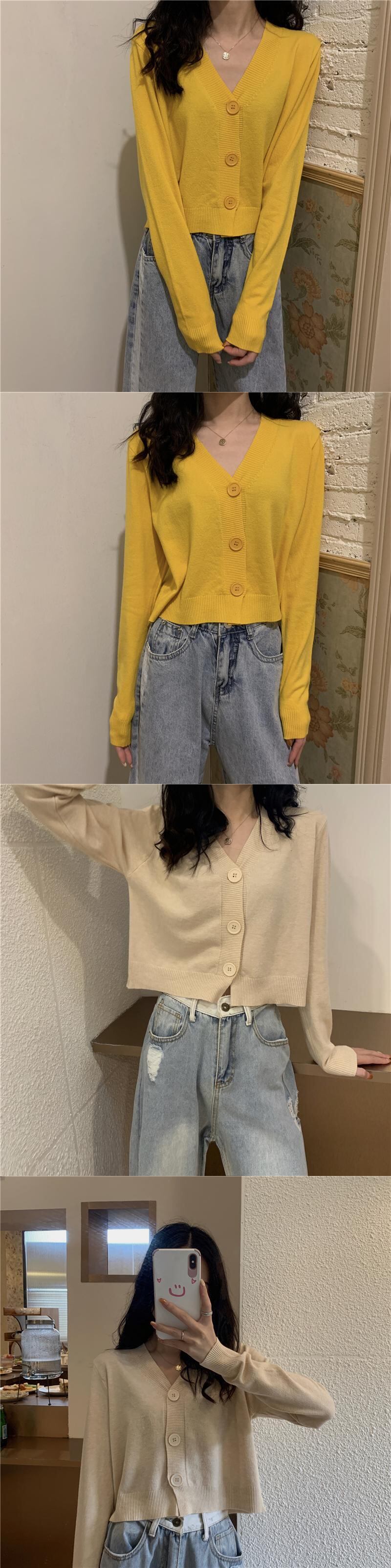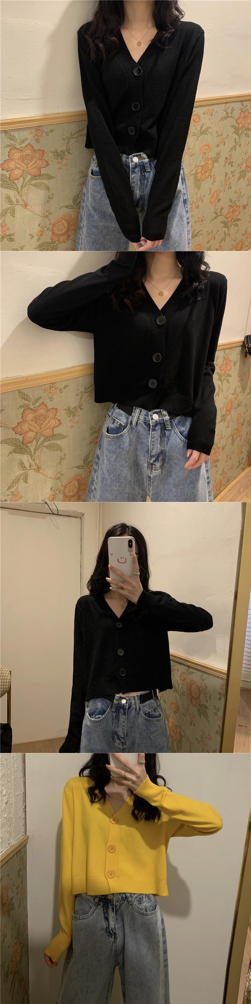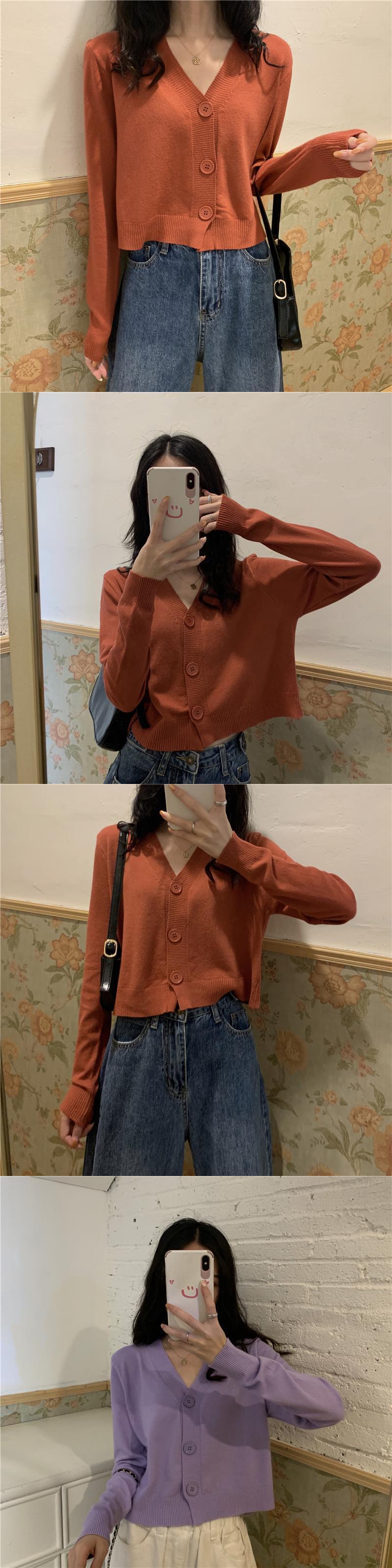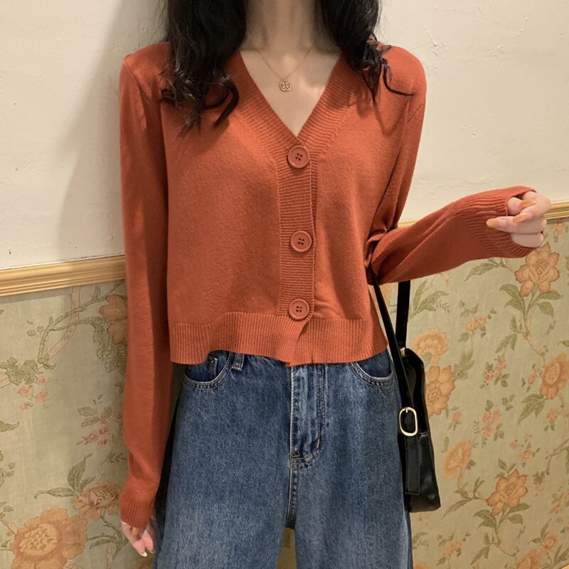 ブルーニットカーディガンスプリングショートセーター ジャケット Vネックトップス 春物 SYJ74352851618