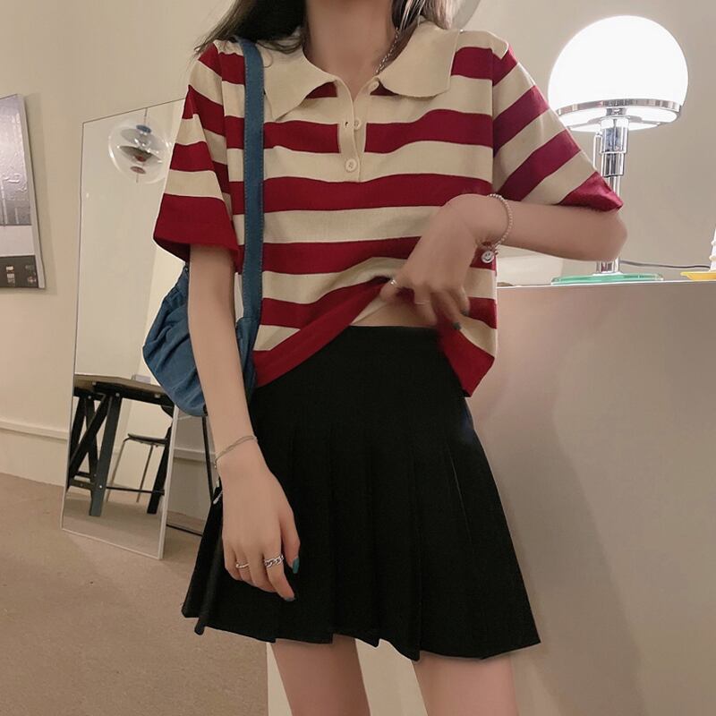 ストライプショートTシャツ夏服カラートップス NEW 夏物 SYJ21706758205