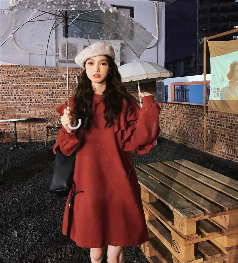 レッドワンピーススプリング秋物セーター スカート シャツ 春物 オータム SYJ88390220016