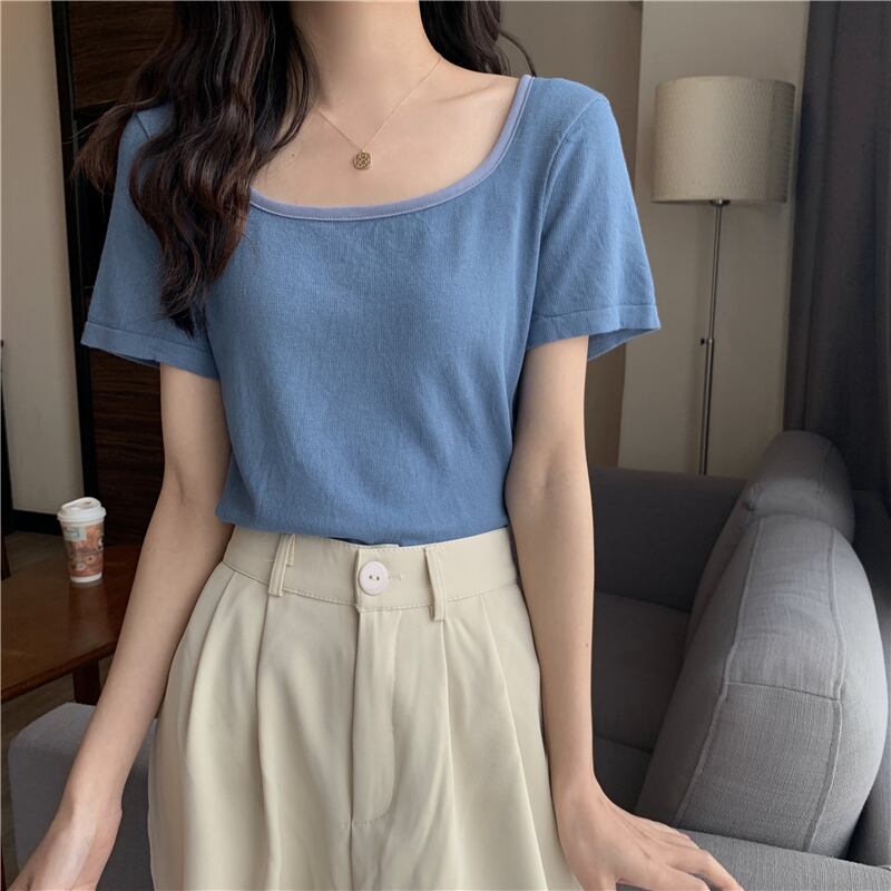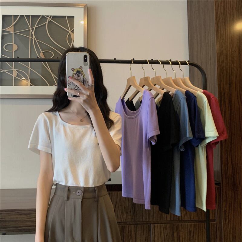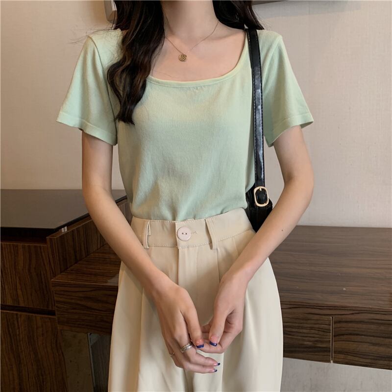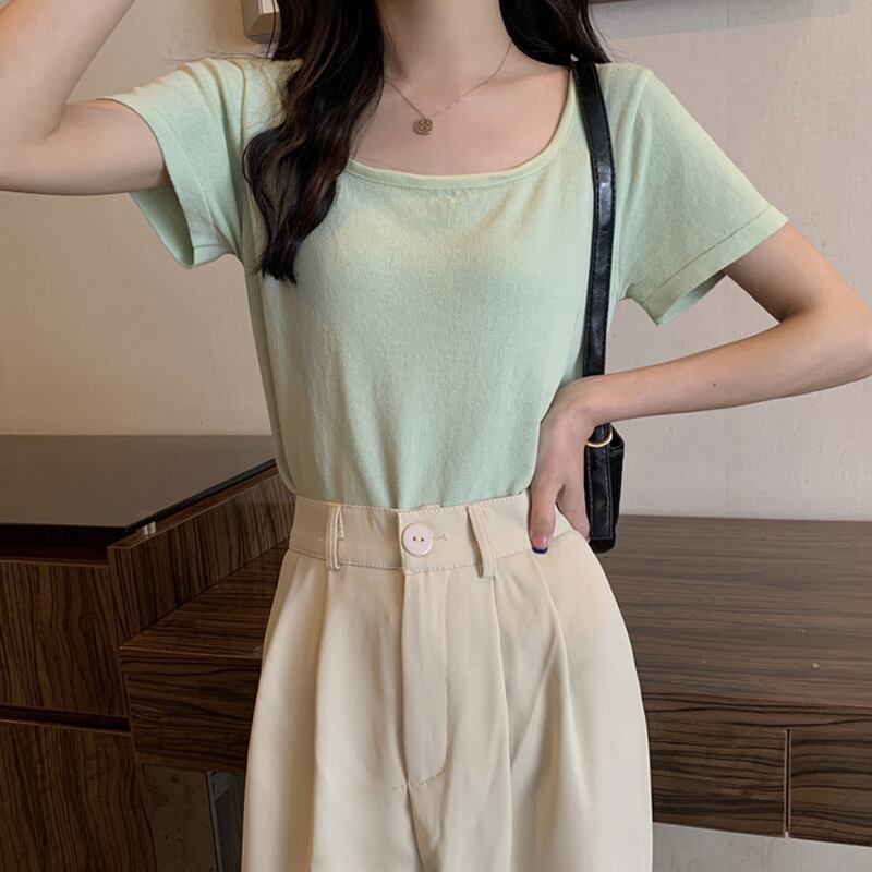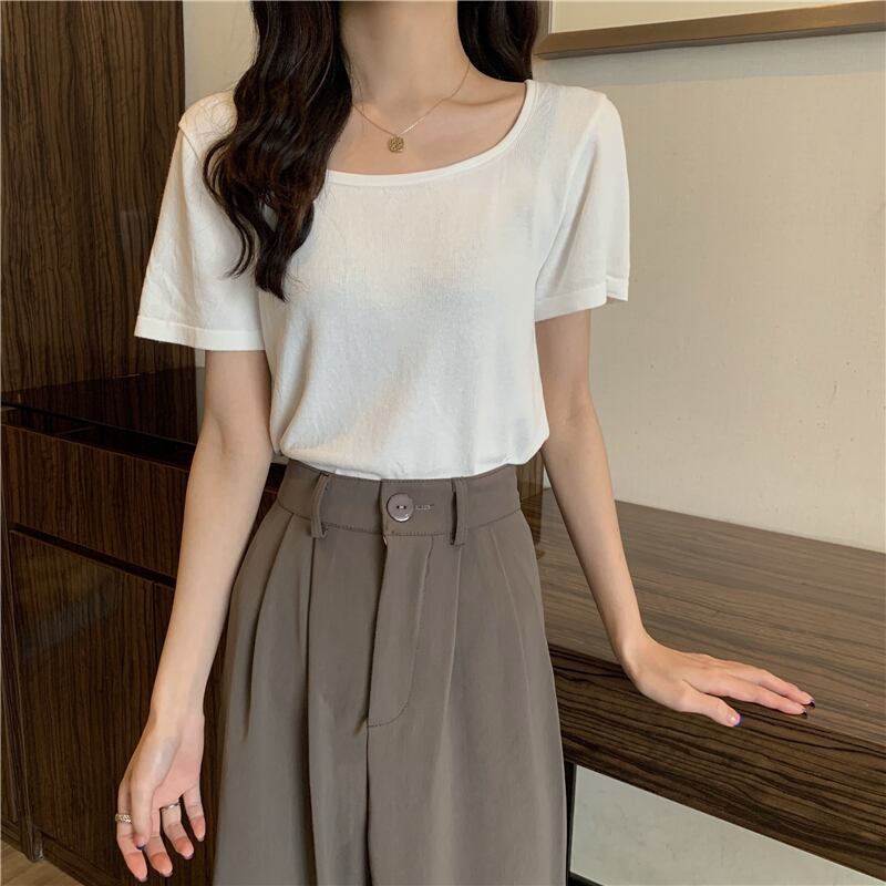 ホワイトショートTシャツ夏服トップス NEW 大人ガーリー スウィート キュート カジュアル 夏物 スクウェア SYJ44953979046