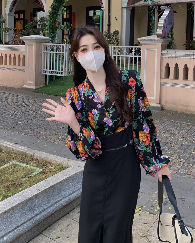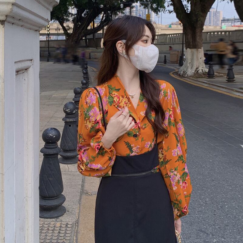 フローラルシャツ スプリング秋物スタンダードスタイルトップス ロング レトロ 春物 オータム 花柄 長袖 SYJ87648185484