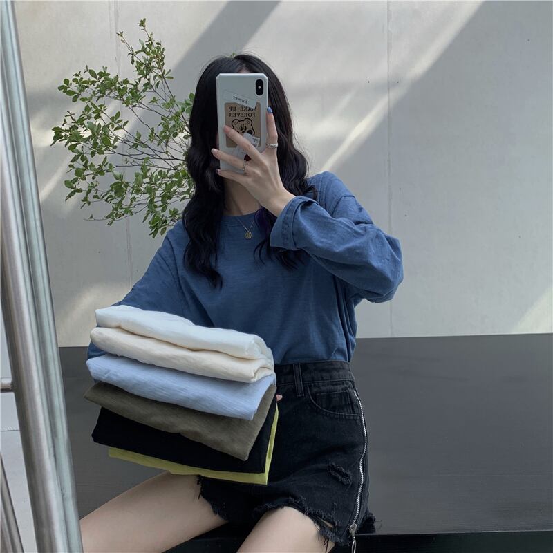 ブルーTシャツシャツ スプリングルーズゆったりスタイルトップス ロング 春物 長袖 SYJ11378888315
