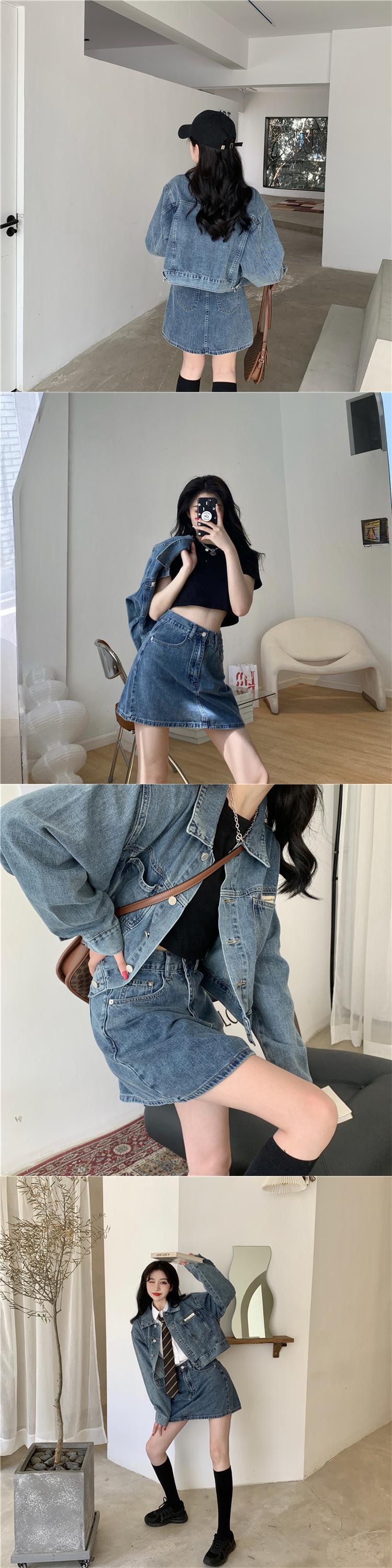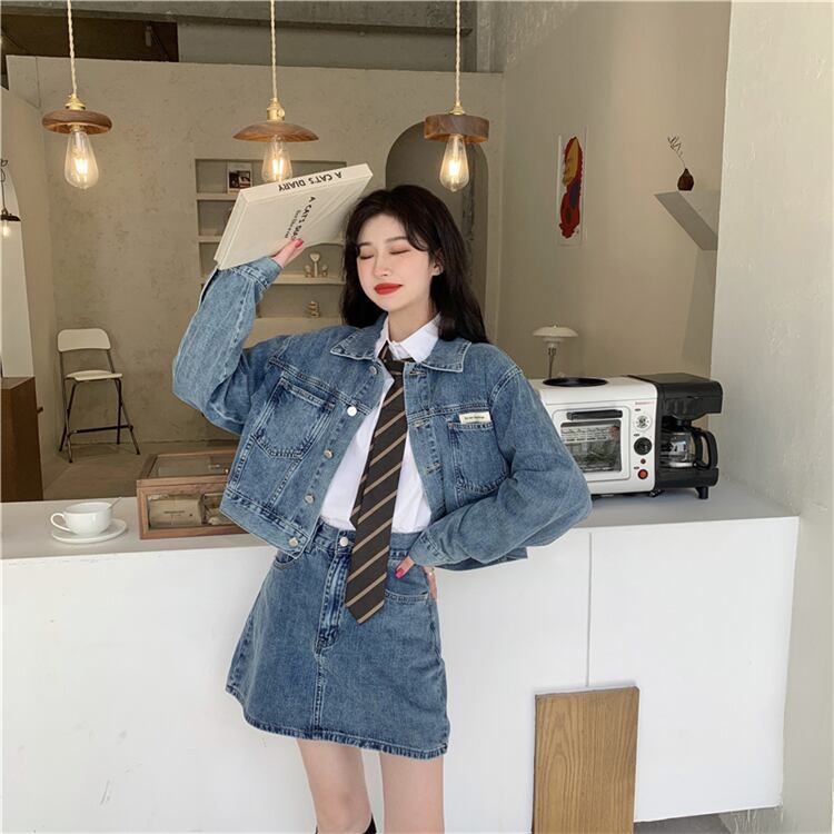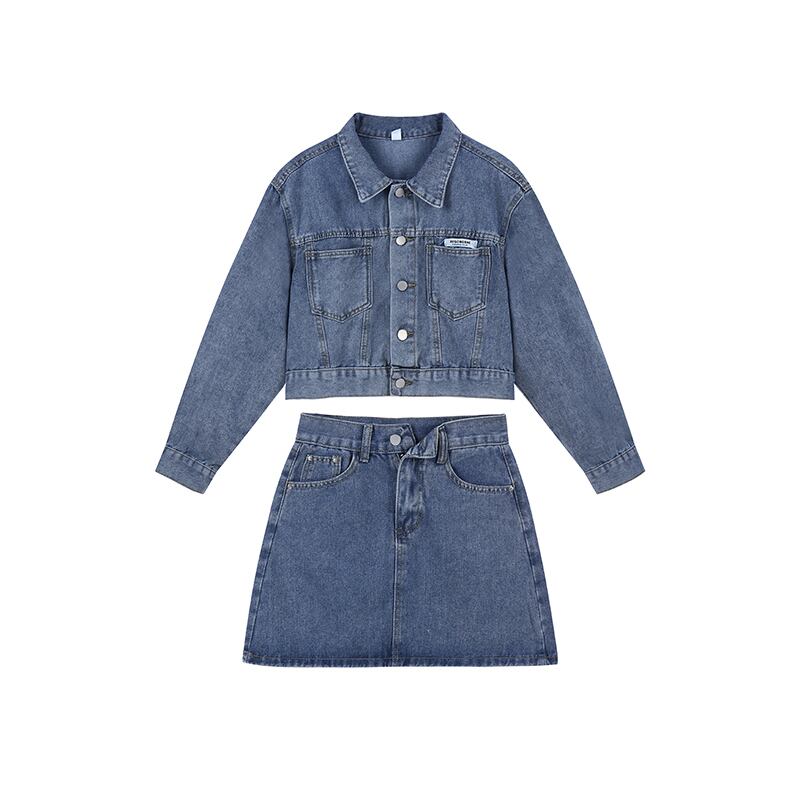 色:デニムジャケットワンピース,デニムスカートシングル,白のシャツ