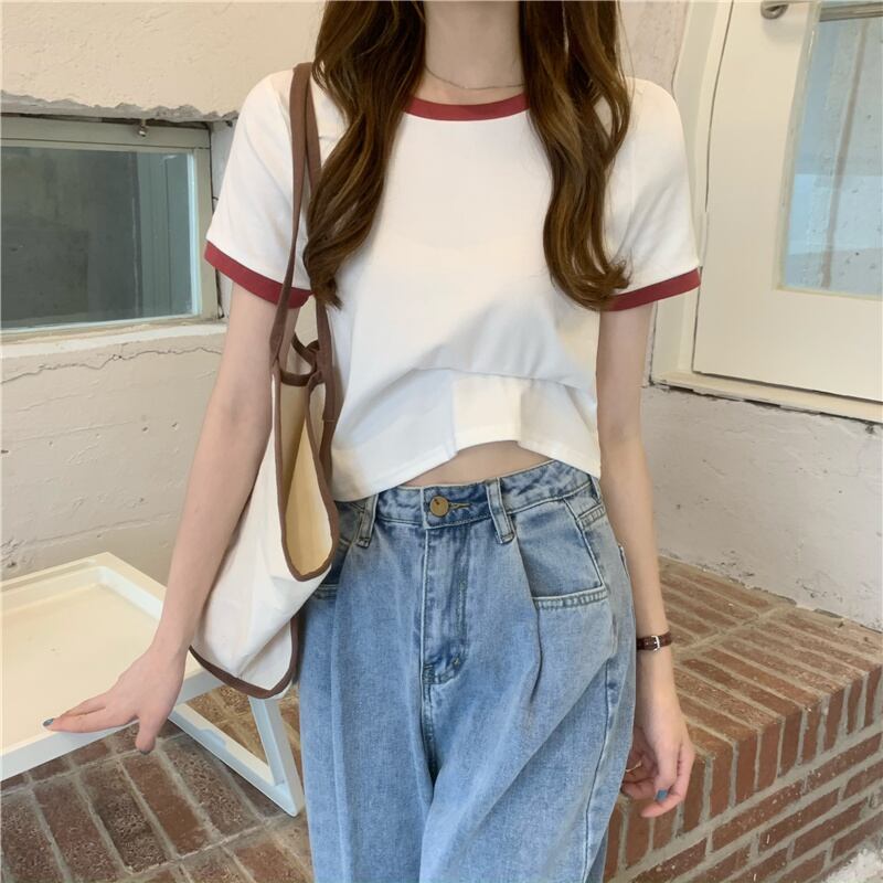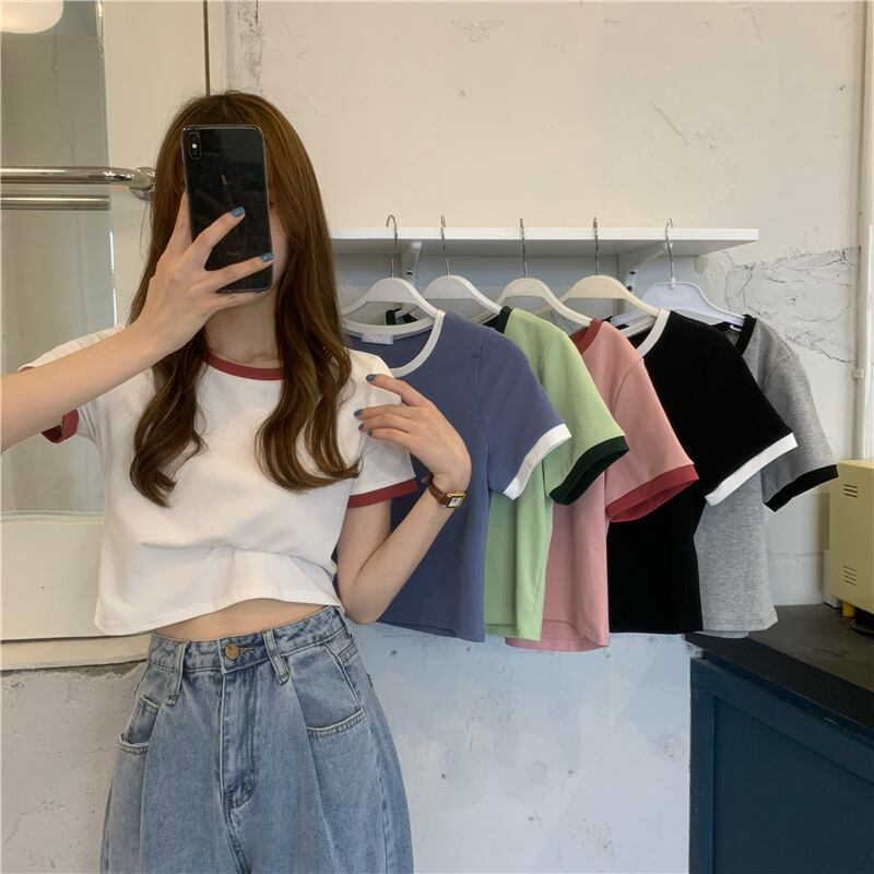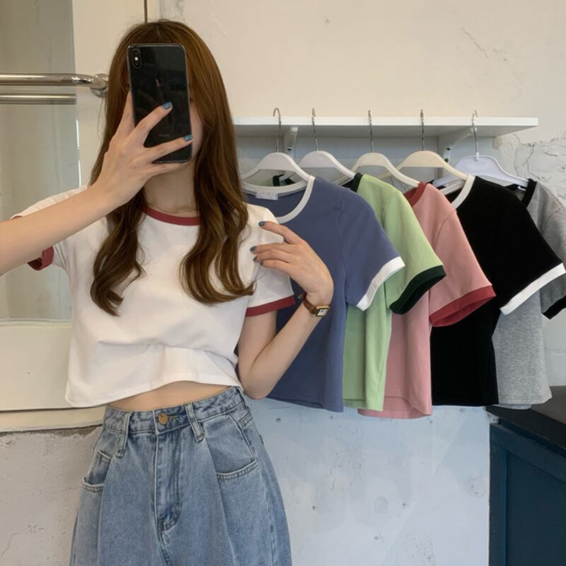 ホワイトショートTシャツ夏服スリムトップス NEW 大人ガーリー スウィート キュート カジュアル 夏物 SYJ54101092498